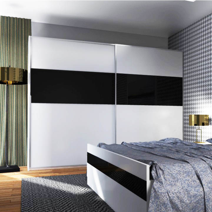 Šatníková skriňa s posuvnými dverami Devon 2D - biela / čierny lesk