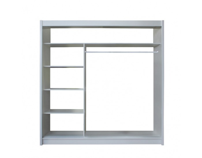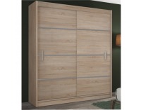 Skriňa MERINA 203 je dvojdverová šatníková skriňa s posuvnými dverami. Za ľavými dverami sa nachádzajú 3 police a za pravými dverami vešiaková tyč. V hornej časti skrine sa nachádza polica. Materiál použitý na výrobu je laminovaná DTD a lišty sú z fóliovanej MDF vo farebnom prevedení dub sonoma / sivá.