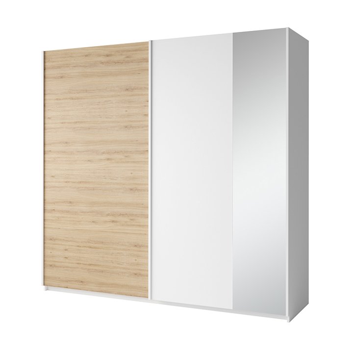 Šatníková skriňa s posuvnými dverami a zrkadlom Simpla 2D - biela / dub divoký