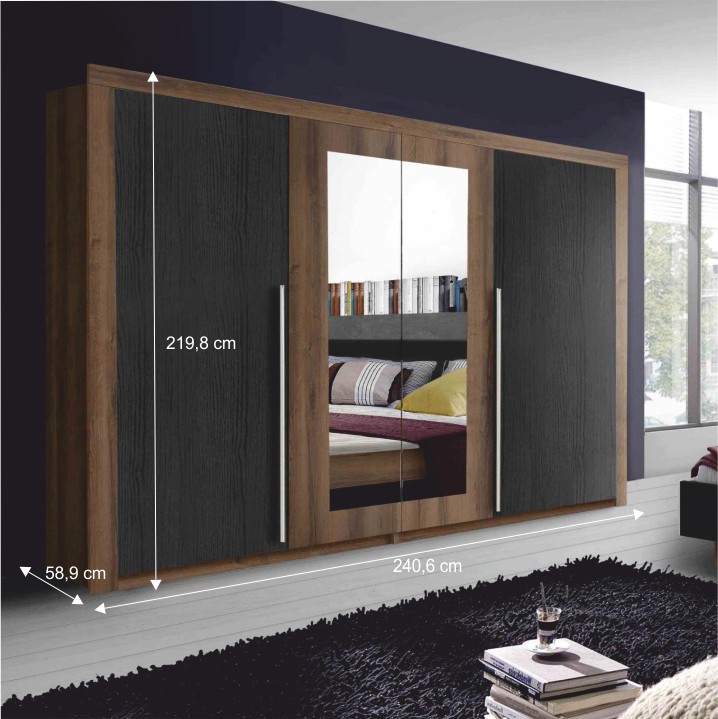 Šatníková skriňa so zrkadlom Asmar 2D - dub tmavý / dub čierny