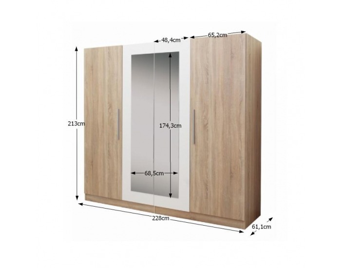 Šatníková skriňa so zrkadlom Matisa 4D - dub sonoma / biela