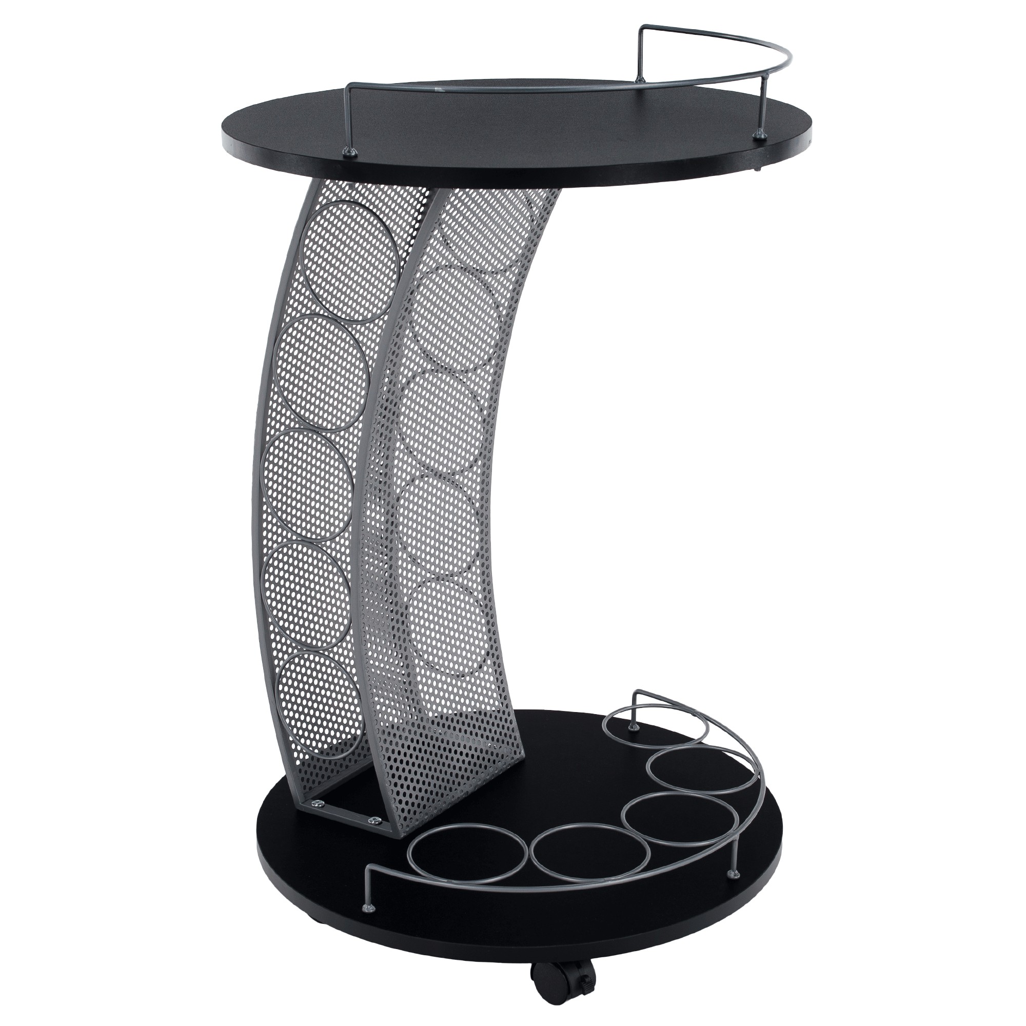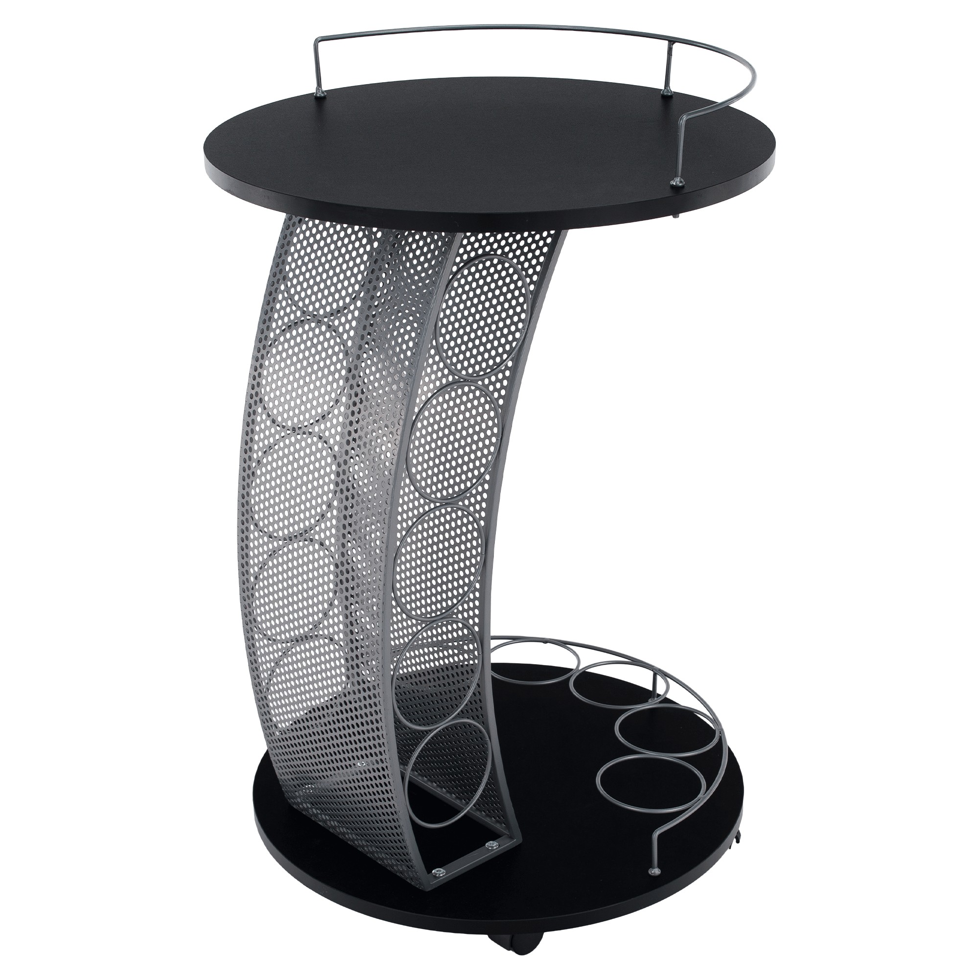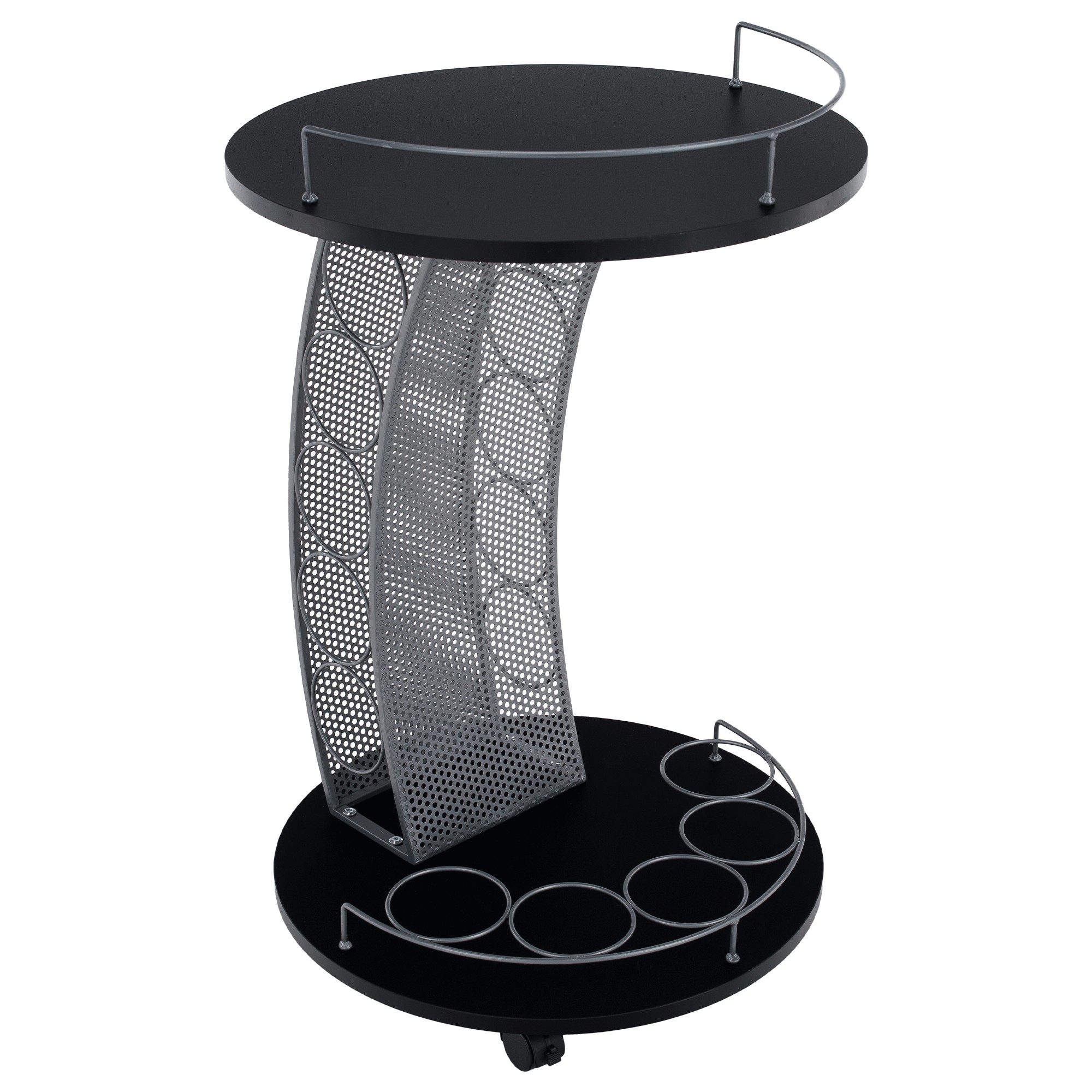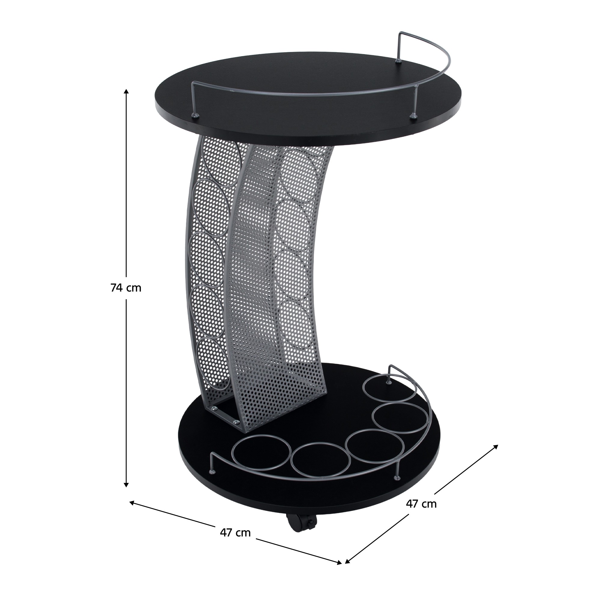 Servírovací stolík ALADAR NEW je praktický pomocník do každej domácnosti, ktorý vám výrazne uľahčí servírovanie. Vďaka svojmu modernému a originálnemu vzhľadu zaujme nielen vás, ale aj každú návštevu. Napriek kompaktným rozmerom ponúka dostatok úložného priestoru - disponuje poschodovou policou na fľaše s kapacitou až päť kusov, spodnou plochou vhodnou na ďalšie fľaše či poháre a vrchnou časťou ideálnou napríklad na ovocie alebo drobné občerstvenie. Manipulácia so stolíkom je veľmi jednoduchá vďaka praktickým kolieskam, ktoré umožňujú jeho ľahké presúvanie. Je vyrobený z kombinácie laminovanej DTD dosky a kovu, čo zaručuje jeho pevnosť a stabilitu. Farebné prevedenie v čiernej a striebornej pôsobí elegantne a ľahko sa hodí do rôznych interiérov. Stolík má rozmery (ŠxHxV): 47x47x74 cm, hrúbka materiálu je 15 mm a dodáva sa v demontovanom stave.