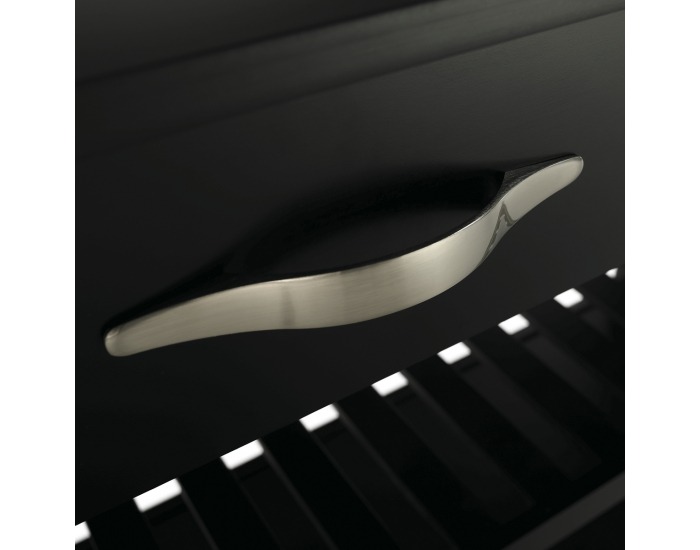 Servírovací stolík na kolieskach Nodal v čiernej farbe je moderným a praktickým doplnkom do vášho interiéru. Tento produkt značky Kondela je vyrobený z aglomerovaného materiálu MDF, ktorý je známy svojou odolnosťou a dlhou životnosťou. Kovové úchytky pridávajú stolíku robustný a elegantný vzhľad.