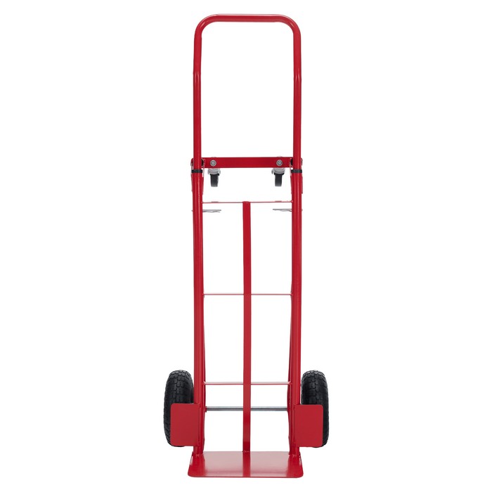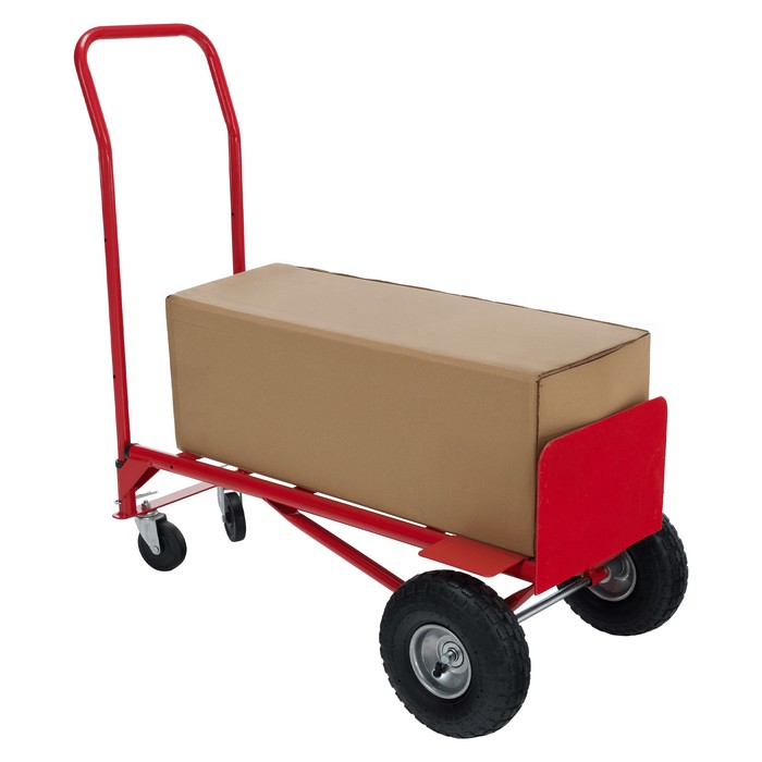 Hľadáte spoľahlivého pomocníka na presúvanie ťažších či objemnejších predmetov? Skladový vozík 2v1 LAMY NEW je praktické riešenie, ktoré možno využiť ako klasický rudlík s rozmermi (ŠxHxV): 53x46x165 cm alebo ako plošinový vozík s rozmermi (ŠxHxV): 53x97x100 cm a plošinou 35x23 cm. Robustná oceľová konštrukcia v červenej farbe s gumovými prvkami v čiernej farbe zaručuje vysokú odolnosť a stabilitu, čo ho predurčuje na používanie v skladoch, dielňach, kanceláriách aj pri sťahovaní. Vozík je vybavený dvoma veľkými nafukovacími kolesami s priemerom 23 cm pre dobrú priľnavosť na rôznych povrchoch a dvoma malými otočnými kolieskami, ktoré zabezpečujú flexibilné a jednoduché manévrovanie. Ergonomicky tvarované držadlá spolu s mechanizmom proti nechcenému pohybu rukoväte zvyšujú pohodlie a bezpečnosť pri používaní. S nosnosťou 150 kg a hmotnosťou 12,5 kg zvládne aj náročnejšie úlohy a vďaka funkcii 2v1 poskytuje univerzálne riešenie pre každodennú prácu. Spojenie praktickosti, odolnosti a všestrannosti robí z Lamy New neoceniteľného pomocníka do každého pracovného prostredia.