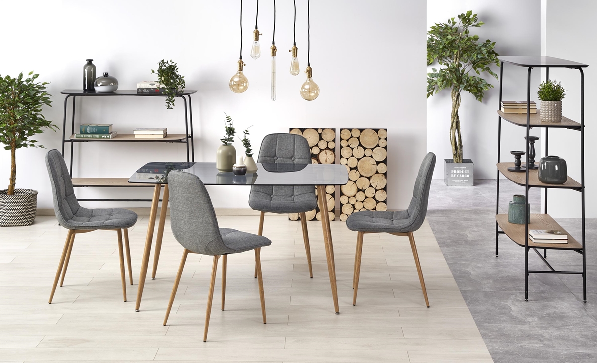Sklenený jedálenský stôl Next - dymová / dub medový