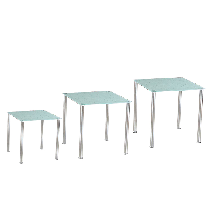 Sklenený konferenčný stolík (3 ks) Nestor - mliečne sklo / oceľ