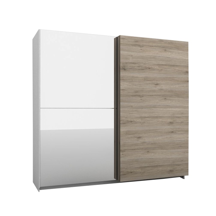 Skriňa s posuvnými dverami BETINO BX-72 je dvojdverová skriňa so zrkadlom na predných dverách, ktorú možno kombinovať s ostatnými prvkami z modelovej rady Betino. Ľavá časť skrine obsahuje 3 úložné priestory a 1 vešiakovú tyč. Pravá časť skrine je policová. Systém Betino je moderná sektorová zostava vo farebnom prevedení dub sonoma tmavá s jednoduchými elegantnými tvarmi. Zostava je vyrobená z kvalitnej laminovanej DTD a doplnená zaujímavými úchytkami.