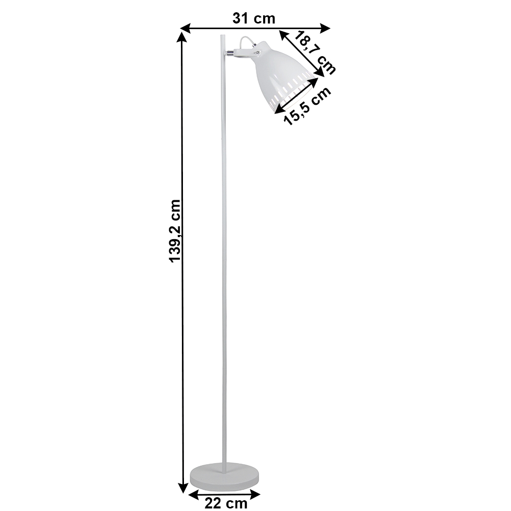 Stojacia lampa Aiden Typ 2 je dostupná vo viacerých farebných prevedeniach, takže si môžete vybrať presne to, čo sa hodí k vášmu zariadeniu. Hmotnosť lampy s obalom dodávateľa je 2.7 kg a jej rozmery sú: hĺbka 22 cm, šírka 31 cm a výška 139.2 cm. Lampa sa napája elektrinou a dodáva sa bez žiarovky.