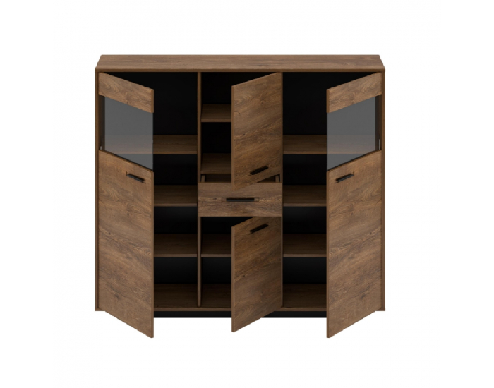 Štvordverová komoda so zásuvkou Delis K - dub bolzano / čierna