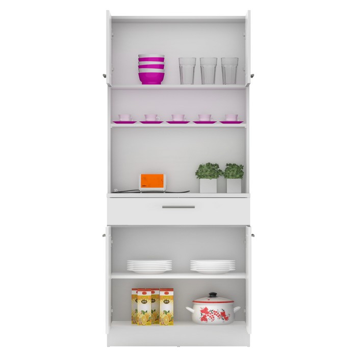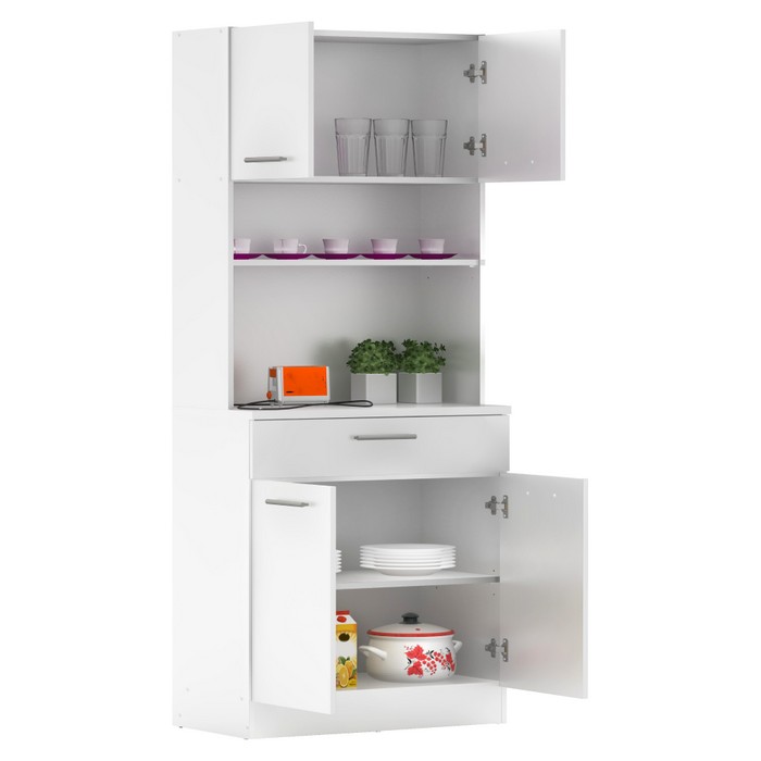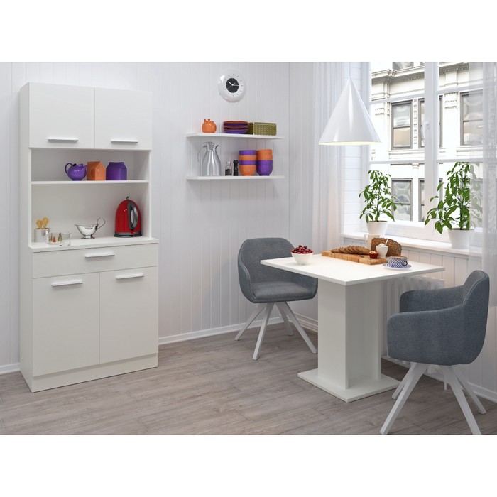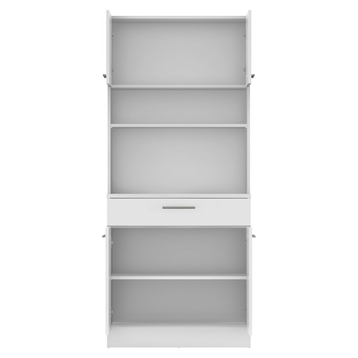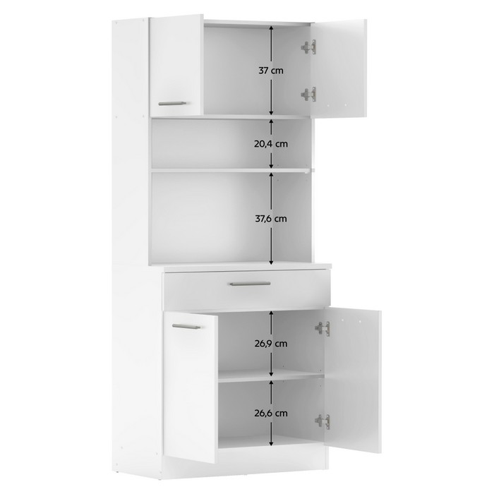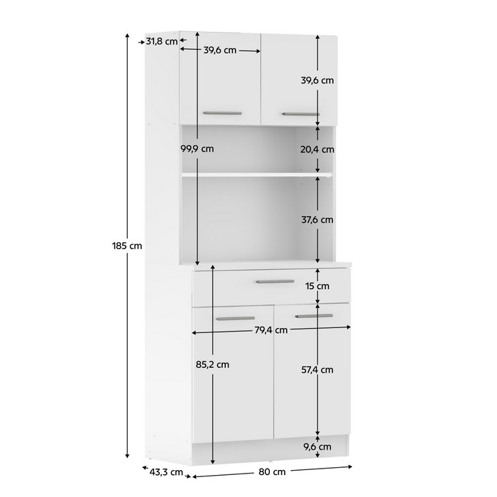 Vytvorte si harmonický a uprataný domov s kredencom DOMIS NEW! Tento praktický a štýlový kus nábytku je vyrobený z laminovanej DTD dosky v modernej bielej farbe, ktorý vnesie do vášho interiéru svieži a nadčasový vzhľad. Je ideálny do kuchyne, jedálne alebo aj na terasu. Ponúka množstvo úložného priestoru v podobe dvoch horných skriniek s dvierkami, dvoch spodných skriniek a jednej zásuvky, kde si ľahko uložíte kuchynské potreby, riad či dekorácie. Stredové otvorené police sú ideálnym miestom na vystavenie obľúbených doplnkov, kníh alebo rastlín, ktoré dodajú priestoru osobitý charakter. Rozmery kredenca sú (ŠxHxV): 80x43,3x185 cm. Hrúbka materiálu je 1,6 cm, pričom vrchný plát spodnej skrinky má hrúbku 2,2 cm pre ešte vyššiu odolnosť a pevnosť. Pohodlnú manipuláciu zabezpečujú strieborné PVC úchytky a stabilitu aj na nerovnom povrchu podporujú plastové klzáky, ktoré zároveň chránia podlahu pred poškriabaním. Domis New je perfektnou voľbou pre každého, kto hľadá praktickú kombináciu funkčnosti, estetiky a inteligentného využitia priestoru.