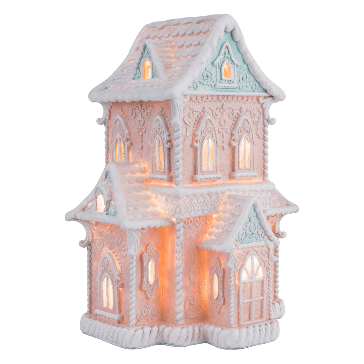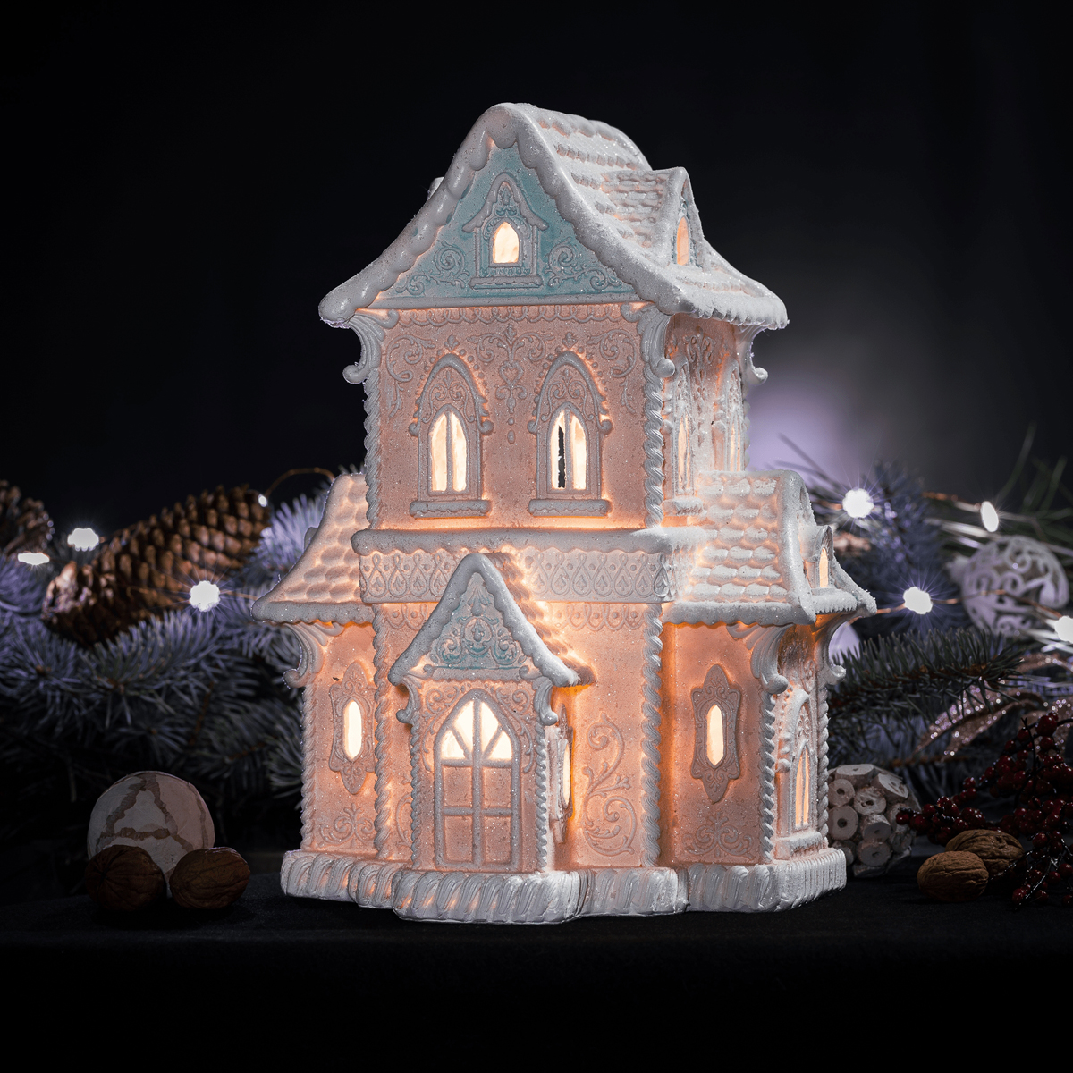 Svietiaci vianočný domček Roska - ružová / modrá / biela