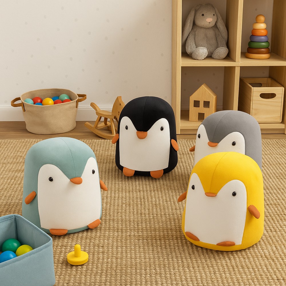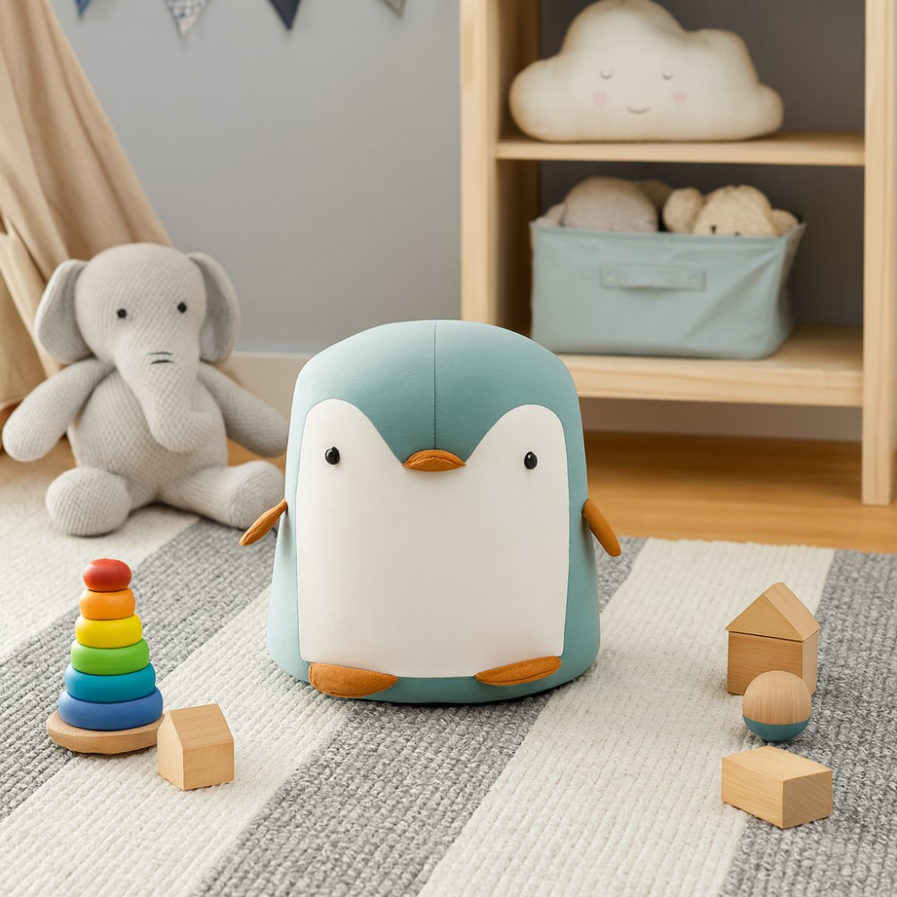 Taburet RAINO v tvare tučniaka prinesie do detskej izby hravosť a rozkošný dizajn, ktorý si deti okamžite obľúbia. So svojimi rozmermi (ŠxHxV): 28x28x34 cm je kompaktný, no zároveň poskytne pohodlné miesto na sedenie či odpočinok. Vyrobený je z pevného dreveného rámu, ktorý zaručuje stabilitu, a potiahnutý látkou v kombinácii modrej a bielej farby, čo mu dodáva svieži a priateľský vzhľad. Mäkká penová výplň sa postará o komfort, zatiaľ čo vysoká oderuodolnosť textílie (85 000 oderov podľa testu Martindale) garantuje dlhú životnosť aj pri každodennom používaní. Taburet unesie až 50 kg, takže je ideálny pre deti pri čítaní, hraní alebo sledovaní rozprávok. Okrem funkčnosti pôsobí aj ako dekoratívny doplnok, ktorý rozžiari priestor a prinesie do izby kamarátsku atmosféru. Taburet Raino je dodávaný v demonte, no jeho zloženie je jednoduché a rýchle. Tento veselý tučniak tak v izbe poslúži nielen ako praktické sedenie, ale aj ako originálny kúsok, ktorý vnesie pokoj a kúsok dobrodružstva.