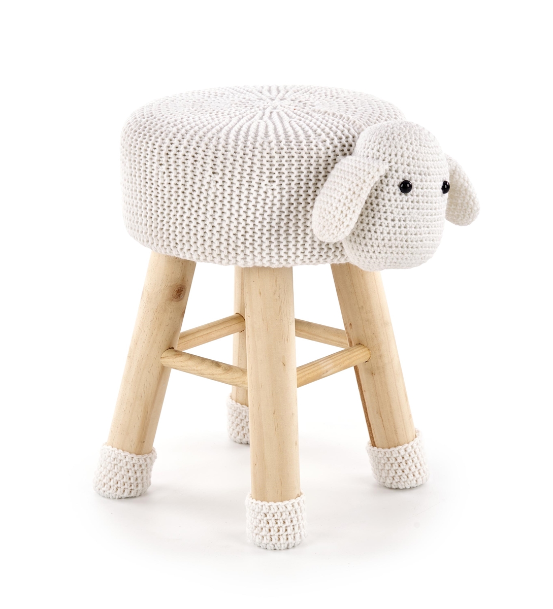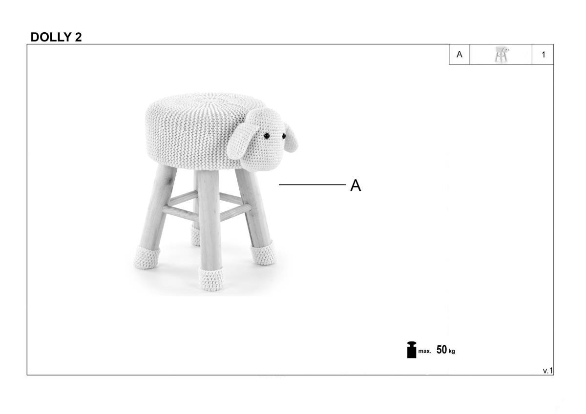 Roztomilá taburetka DOLLY 2 Vás chytí za srdce a poteší Váš pohľad. Rovnakú radosť z nej budú mať aj Vaše ratolesti. Rozmery taburetky sú (ŠxHxV): 42x42x29 cm. Na jej výrobu boli použité kvalitné materiály ako masívne borovicové drevo v kombinácii s látkou. Dizajn taburetky oživuje tvár ovečky v krémovej farbe. Získate tak praktickú pomocníčku, hračku a milú dekoráciu do domácnosti.