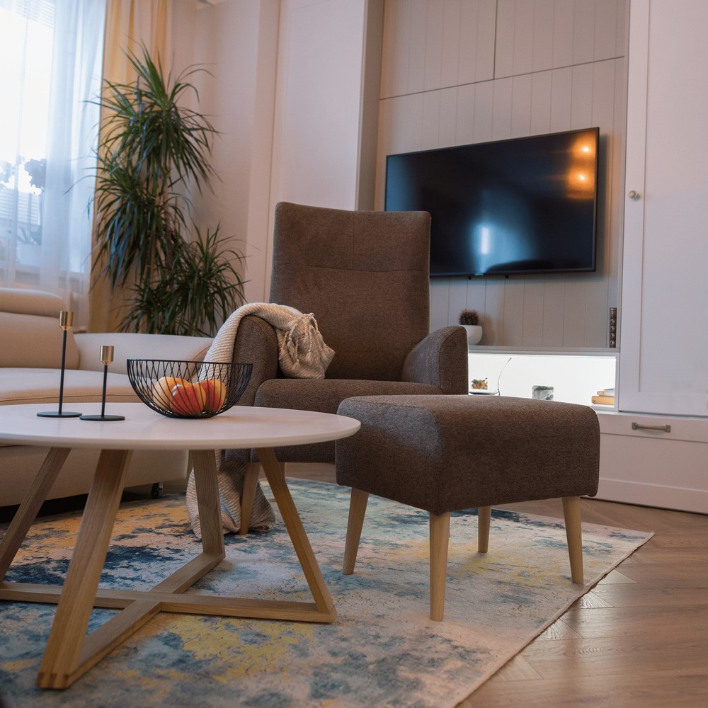 Taburety si právom nachádzajú čoraz pevnejšie miesto v našich domácnostiach. Taburet SAMY je nielen funkčný, ale aj mimoriadne elegantný – skvelý doplnok do každej miestnosti, ktorý poslúži ako opora pre unavené nohy, náhradné miesto na sedenie alebo štýlový doplnok ku kreslu. Očarí vás kombináciou hnedej látky Matana (100% polyester) a drevených nôh vo farbe buk, ktorá mu dodáva príjemný prírodný vzhľad a ľahko sa kombinuje s iným nábytkom. Poťahová látka sa môže pochváliť oderuodolnosťou až 57 000 oderov podľa testu Martindale, čo značí dlhú životnosť aj pri častom používaní. Taburet má kompaktné rozmery (ŠxHxV): 52x42 x43 cm a váži len 7 kg, takže ho ľahko premiestnite podľa potreby. Výška spodného priestoru od podlahy 21,5 cm uľahčuje čistenie pod ním. Je celočalúnený, pôsobí ucelene a luxusne z každého uhla pohľadu. Skombinujte ho s kreslom Samy a vytvorte si vlastnú relaxačnú zónu, z ktorej sa vám nebude chcieť odísť. Dodávané v monte - okamžite pripravený na použitie.