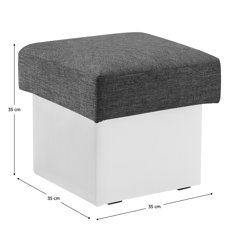 Taburetka T1 sa vyznačuje svojou funkčnosťou a modernosťou. Stabilná konštrukcia taburetky je čalúnená kvalitnou a odolnou ekokožou vo farbe biela (Soft 17) a pohodlné sedadlo je v prevedení sivá (Sawana 05) čalúnené kvalitnou látkou. Elegantný dizajn umožňuje jej umiestnenie do moderného interiéru, ale aj do klasických a mnohých iných štýlov zariadenia domácnosti. Štvorcový dizajn, priestranné sedadlo, nízke čierne nožičky a zlepšenie pohodlia pri oddychu na sedačke alebo kresle - týmto všetkým sa s hrdosťou pýši táto praktická taburetka. Šírka a hĺbka taburetky je 35 cm a jej výška je 35 cm a je dostupná aj v iných prevedeniach.