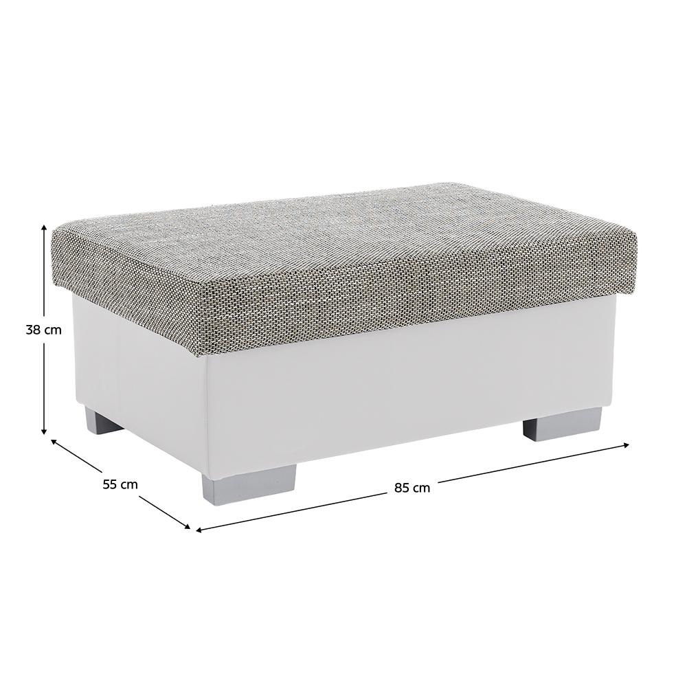 Taburetka T4 sa vyznačuje svojou funkčnosťou a modernosťou. Stabilná konštrukcia taburetky je čalúnená kvalitnou a odolnou ekokožou vo farbe biela (Soft 17) a pohodlné sedadlo je v prevedení sivá (Berlin 01) čalúnené kvalitnou látkou. Elegantný dizajn umožňuje jej umiestnenie do moderného interiéru, ale aj do klasických a mnohých iných štýlov zariadenia domácnosti. Štvorcový dizajn, priestranné sedadlo, nízke čierne nožičky a zlepšenie pohodlia pri oddychu na sedačke alebo kresle - týmto všetkým sa s hrdosťou pýši táto praktická taburetka. Šírka taburetky je 85 cm, hĺbka je 55 cm, jej výška je 42 cm a je dostupná aj v iných prevedeniach.