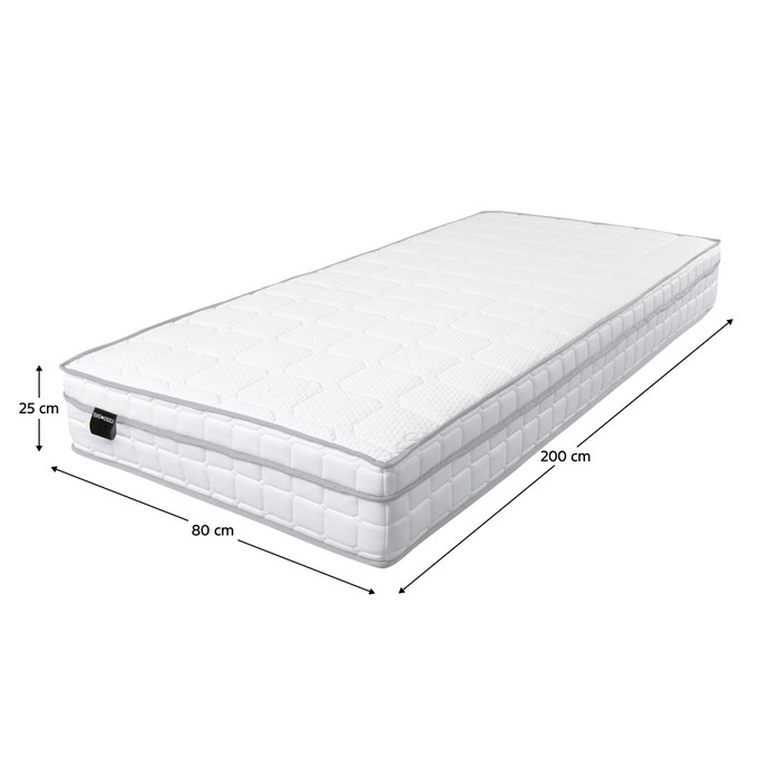 Jednostranný taštičkový matrac ROLKA s rozmermi 80x200 cm je navrhnutý tak, aby poskytoval pohodlný spánok a správnu oporu tela pre každodenný odpočinok. Vďaka strednej tvrdosti T3 je vhodný pre väčšinu používateľov, pričom jeho nosnosť dosahuje až 130 kg na osobu. Celková výška matraca je 25 cm, čo prispieva k vysokému komfortu pri ležaní aj vstávaní. Základ matraca tvorí 7-zónové taštičkové pružinové jadro s hrúbkou 14 cm a hustotou 256 taštičiek na m˛, ktoré je rozdelené do anatomických zón zabezpečujúcich optimálnu oporu hlavy, ramien, chrbta, bedier aj nôh. Jadro je doplnené vrstvou 4 cm profilovanej confort peny a 5 cm confort peny s hustotou 24 kg/m3, ktoré zvyšujú mäkkosť, priedušnosť a prispôsobenie sa telu. Spevnené strany matraca zvyšujú jeho stabilitu a životnosť. Matrac je vybavený kvalitným poťahom Silver s gramážou 300 g/m2˛ zo 100 % polyesteru, ktorý je príjemný na dotyk a zároveň antialergický, antibakteriálny a antiroztočový. Poťah má zips po celom obvode, je snímateľný a prateľný pri teplote do 40 °C, čo zabezpečuje jednoduchú údržbu a vysoký hygienický štandard. Zdravotnú nezávadnosť použitých materiálov potvrdzuje certifikát OEKO-TEX Standard 100. Matrac je vákuovo balený, preto sa po rozbalení odporúča nechať ho na rovnom podklade 3 až 5 dní, aby sa plne rozvinul na svoju deklarovanú výšku. Pre správne fungovanie matraca sa odporúča použiť pevný latkový alebo lamelový rošt s minimálnym počtom 14 lát alebo lamiel a maximálnou medzerou medzi nimi 5 cm.