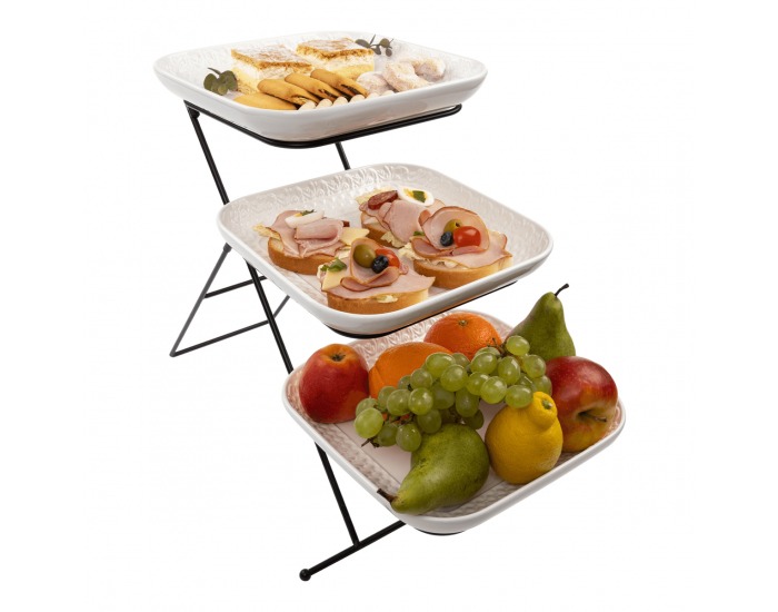 Vďaka svojej svetlej farebnosti sa ľahko kombinuje s ostatným kuchynským príslušenstvom či stolovacím riadom. Trojposchodový etažér Dedra je skvelou voľbou pre tých, ktorí hľadajú praktické riešenie pre usporiadanie jedálenského stola alebo kuchynskej linky.