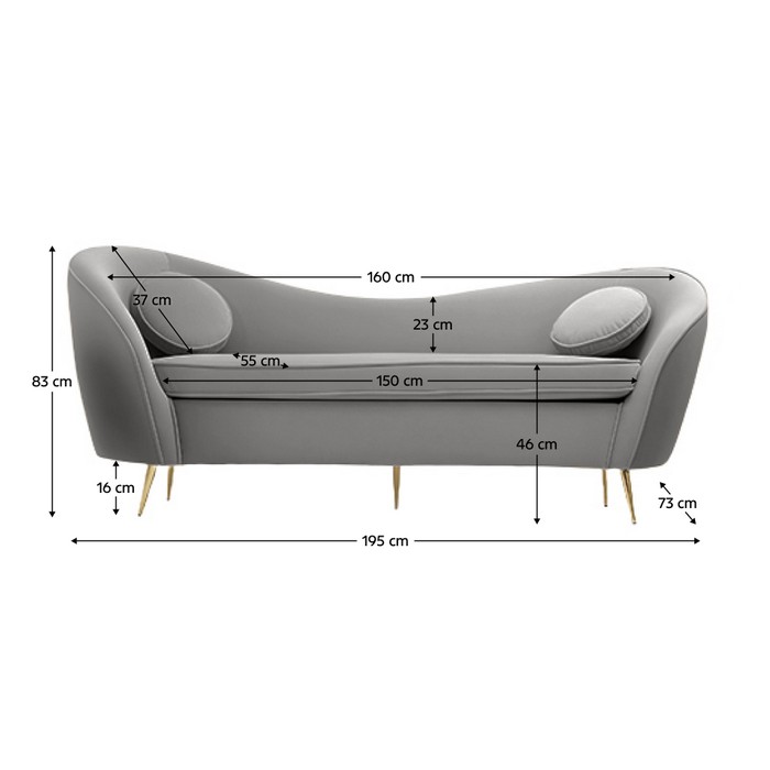 Vneste do svojho domova moderný štýl a príjemnú eleganciu s trojsedačkou EZIO TYP 3, ktorá okamžite zútulní každý interiér. Tento nadčasový kúsok je navrhnutý tak, aby prirodzene zapadol do obývačky, pracovne aj spálne. Zaujme čistými líniami, sofistikovaným vzhľadom a univerzálnou sivou farbou. Celá trojsedačka je čalúnená hebkou Velvet látkou, ktorá pôsobí luxusne a zároveň je mimoriadne odolná - podľa testu Martindale zvládne až 80 000 oderov, čo zaručuje dlhú životnosť aj pri každodennom používaní. Pohodlné sedenie zabezpečuje výška sedu 46 cm, hĺbka sedu 55 cm a priestranná šírka sedu 150 cm, vďaka čomu poskytuje komfortný priestor na oddych pre celú rodinu. Celkové rozmery sú (ŠxHxV): 195x73x 83 cm. Chrbtová opierka so šírkou 160 cm a výškou 23-37 cm ponúka príjemnú oporu, pričom jej zaoblené línie podčiarkujú elegantný charakter nábytku. K modernému vzhľadu prispievajú aj štíhle kovové nožičky v prevedení gold chróm zlatá, ktoré dodávajú 3-sedu ľahkosť a noblesu. Spodný priestor s výškou 16 cm zároveň uľahčuje čistenie podlahy pod nábytkom. Výplň tvorí kvalitná pena Standard Foam s hustotou 24 kg/m3, ktorá zabezpečuje mäkké, no stále stabilné sedenie. Celková nosnosť modelu je 250 kg. Trojsedačka je celočalúnená, doplnená o dva dekoratívne vankúše s rozmermi (ŠxV): 35x35 cm, ktoré zvyšujú pohodlie aj estetiku. Jeho moderný, nadčasový a elegantný dizajn ľahko povýši každý priestor na harmonické a útulné miesto. Dodáva sa v demonte, pričom montáž je jednoduchá a rýchla.