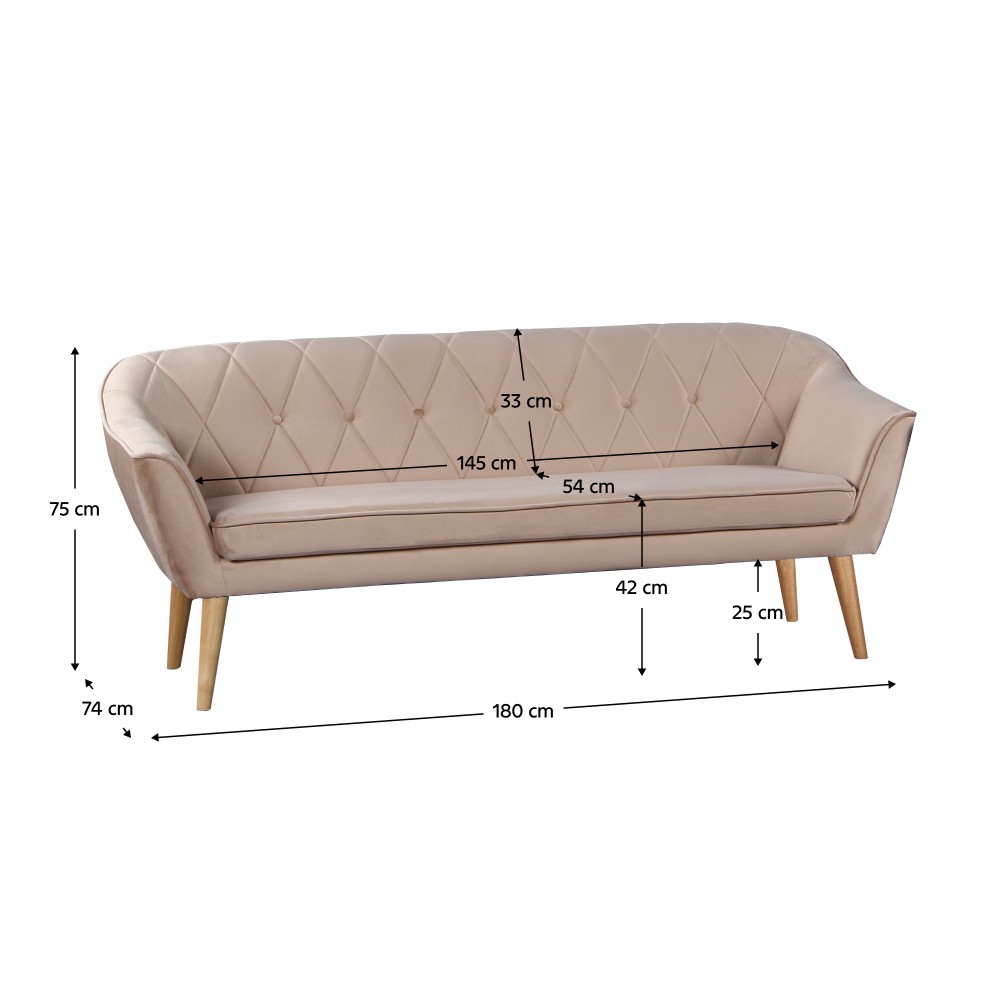Vneste do svojho domova eleganciu a pohodlie s luxusnou trojsedačkou NOSEL, ktorý sa stane dominantou vášho interiéru. Sedačka je celočalúnená jemnou béžovou látkou s odolnosťou 20?000 oderov podľa testu Martindale, vďaka čomu si zachová svoj vzhľad aj pri každodennom používaní. Pevnú konštrukciu tvorí kombinácia eukalyptového dreva a preglejkového rámu, ktorá zaručuje stabilitu a dlhú životnosť. O oporu sa starajú drevené kaučukové nožičky v prírodnej farbe s výškou spodného priestoru od podlahy 25 cm. Trojsedačka je navrhnutá v ikonickom štýle Chesterfield, ktorý charakterizujú zakrivené opierky rúk, bohato prešívané čalúnenie a dekoratívne gombíky. Vďaka rozmerom (ŠxHxV): 180x74x75 cm ponúka dostatok priestoru na pohodlné sedenie. Výška sedu 42 cm, hĺbka 54 cm a chrbtová opierka vysoká 33 cm zabezpečia komfortný odpočinok. Výplň z peny a bavlneného vlákna sa postará o mäkkosť a príjemné sedenie, zatiaľ čo nosnosť 360 kg garantuje odolnosť a bezpečnosť. Sedačka je dodávaná v demonte pre jednoduchšie prenášanie a montáž. Trojsedačka Nosel spája luxusný dizajn, kvalitné materiály a pohodlie, čím sa stáva štýlovým centrom vašej obývačky, ktoré očarí každú návštevu.