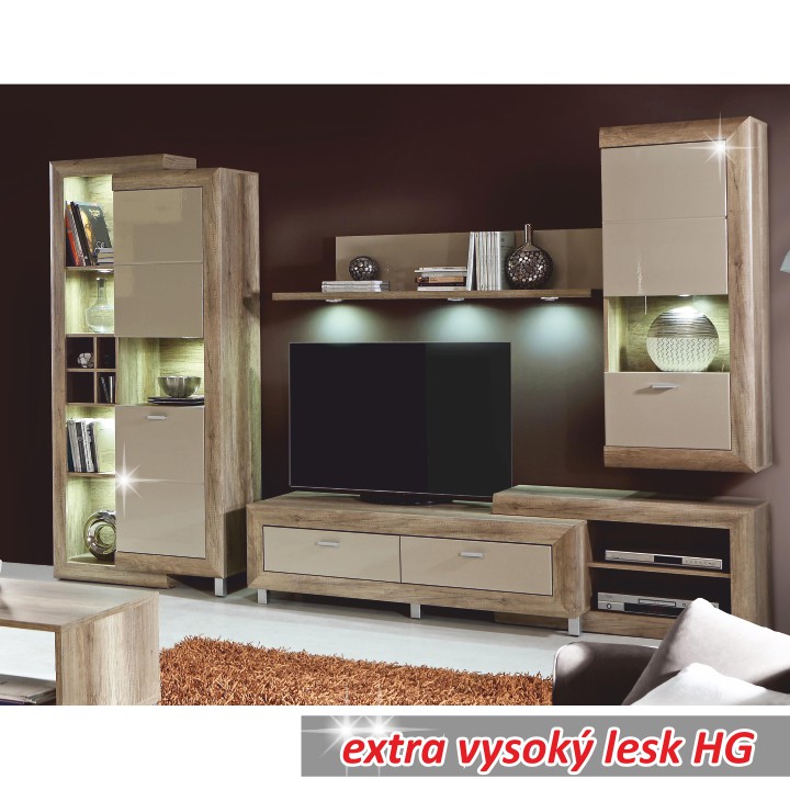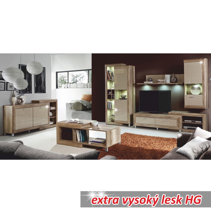 TV stolík Gatik 131 - dub antický / béžový vysoký lesk