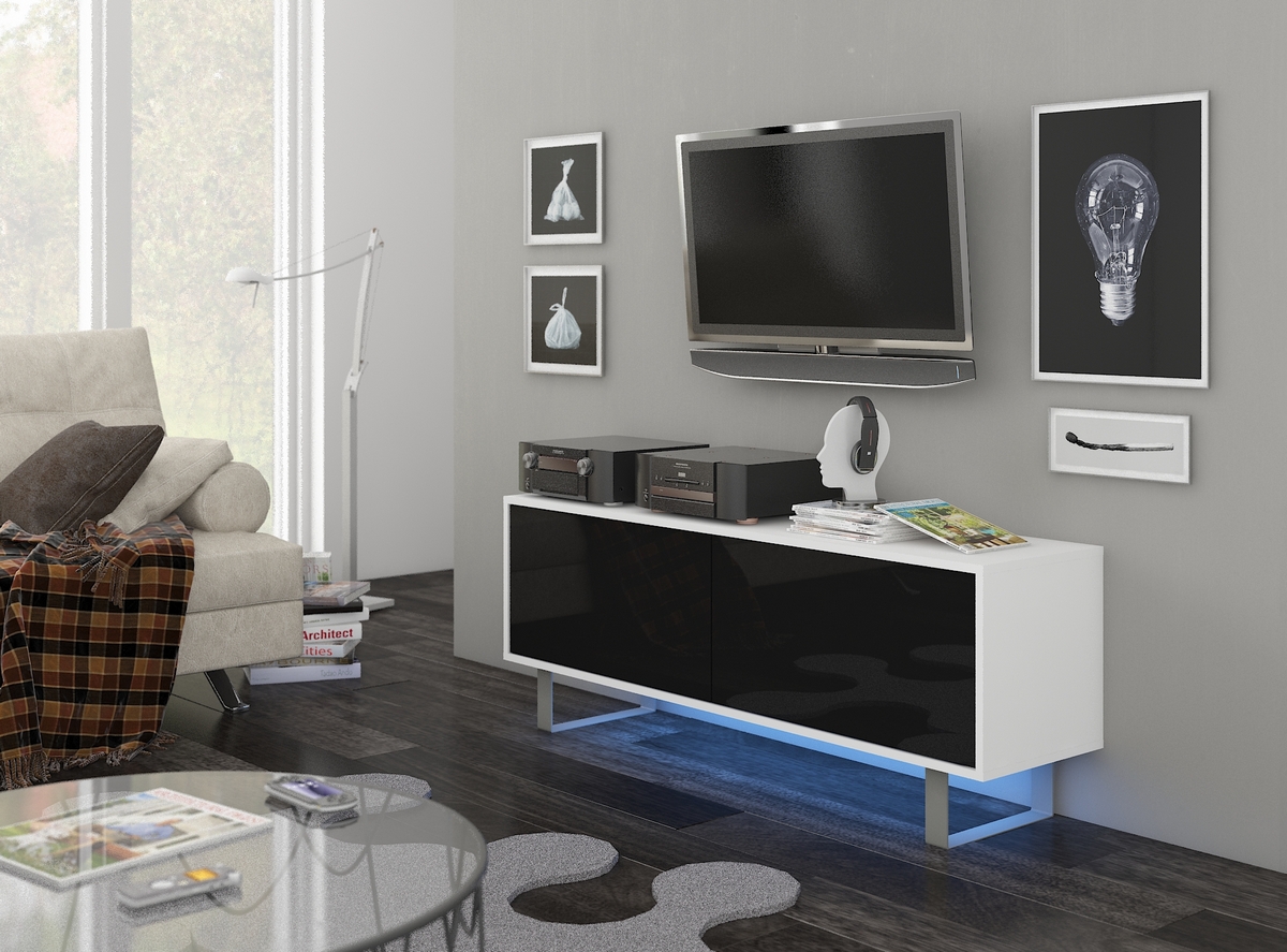 TV stolík King KIN-01 - biela / čierny lesk