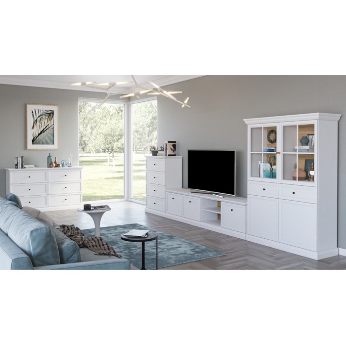 TV stolík LOCCA RTV3D poskytuje veľkorysý úložný priestor v podobe troch skriniek s kovovými úchytkami v čiernej farbe a praktického otvoreného úložného priestoru. Za dvierkami sa nachádzajú police, ktoré rozdeľujú úložný priestor na dve časti a umožňujú prehľadné uloženie príslušenstva. Stolík je ideálny na umiestnenie televízora aj všetkých potrebných multimediálnych zariadení. Je vyrobený z laminovanej DTD a laminovanej MDF v bielej farbe, pričom sololit v dekore dub craft dotvára moderný vzhľad. Rozmery TV stolíka sú (ŠxHxV): 206,2x39,5x51,1 cm a hrúbka materiálu sa pohybuje od 1,5 do 1,8 cm. Výška spodného sokla je 8,6 cm a vrchného sokla 2,2 cm. Vrchná doska má nosnosť až 40 kg, pričom nosnosť jednej police je 5 kg. Stolík je trojdverový, obsahuje tri skrinky a otvorený úložný priestor doplnený otvorom na vývod káblov, ktorý zabezpečuje praktické a čisté vedenie kabeláže. Vďaka modernému dizajnu sa hodí do rôznych interiérov. Pre vyššiu bezpečnosť sa odporúča jeho pripevnenie k stene. Produkt je dodávaný v demonte.