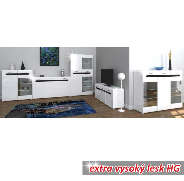TV stolík Owal LB - biely vysoký lesk / čierny vysoký lesk