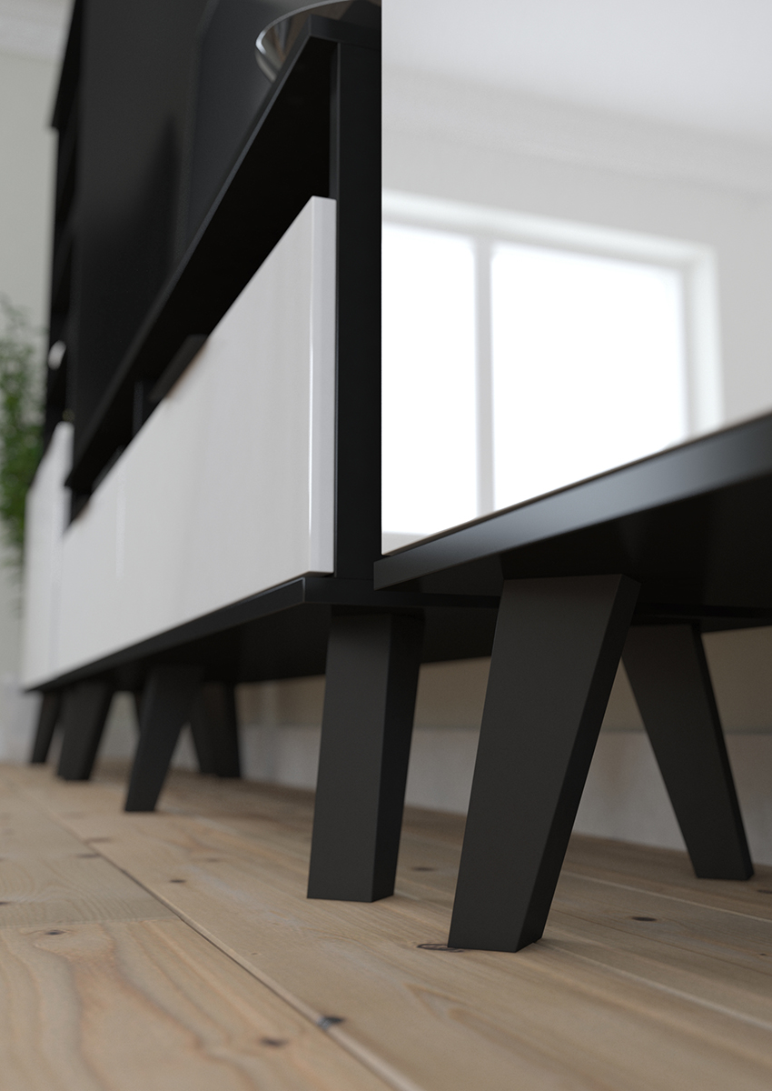 TV stolík SVN-11 vytvorí pokojný a štýlový domov podľa Vašich predstáv. Disponuje dvomi dvierkami s úložným priestorom a priestor nad nimi je možné prakticky využiť na uloženie audio / video techniky. Vyrobený je vo farebnom prevedení čierna / biely lesk a rozmery sú (ŠxHxV): 160x40x57 cm. Chcete si zariadiť obývačku, spálňu alebo kanceláriu? Systém SVEN Vám v tom rád pomôže. Kolekcia SVEN sa pýši svojou elegantnosťou a pravidelnosťou. Na výrobu kolekcie SVEN bola použitá kvalitne spracovaná laminovaná DTD o hrúbke 16 mm a hrany sú doplnené odolnou ABS úpravou. Tiché dotváranie skriniek prispeje k zvýšeniu komfortu Vašej domácnosti. Ak hľadáte moderný, funkčný a detailne prepracovaný nábytok - SVEN je tá správna voľba. Z dostupných kombinácií farieb si určite vyberiete tú pravú a prvky systému dokonale skombinujete. Farebné kombinácie spolu s bielou vo vysokom lesku pôsobia luxusne a jednotlivé prvky sú obohatené o čierne nadčasové úchytky. Drevené čierne nožičky s výškou 18 cm budú praktickým pomocníkom pri manipulácii s nábytkom, ale aj pri upratovaní. Na želanie je možné dokúpiť LED osvetlenie v rôznych farbách.
