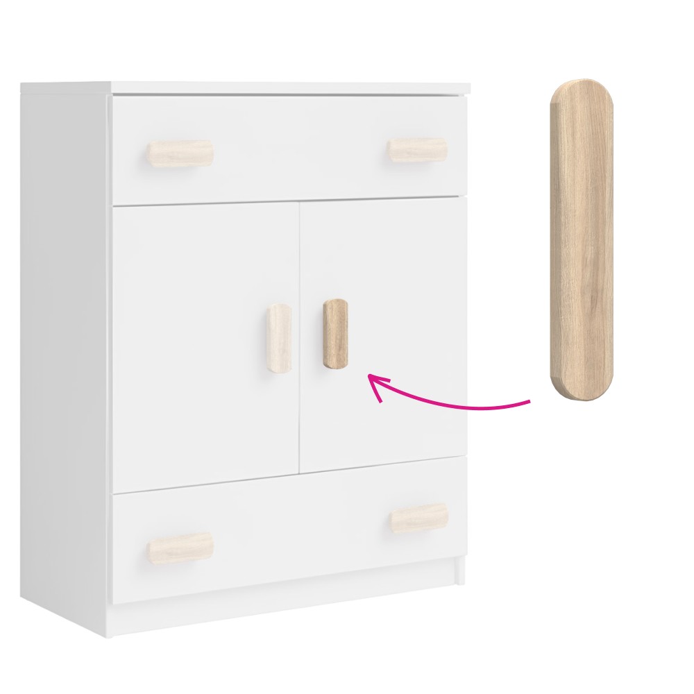 Na to, aby sa deti cítili šťastné, uvoľnené a plné energie, potrebujú priestor, v ktorom budú mať pocit bezpečia a pohodlia. Práve tam môžu naplno rozvíjať svoje myšlienky, pocity aj kreativitu. Sektorový systém Svend vytvorí takýto priestor - je vyrobený z kvalitnej laminovanej drevotriesky (DTD) s ABS hranami a vďaka jemnému bielemu prevedeniu pôsobí čisto a harmonicky. Farebné doplnky v podobe úchytiek dodávajú nábytku hravosť a originálny charakter, pričom ho môžete ozdobiť aj vlastnými nálepkami. Úchytky SVEND sú praktickým aj dekoratívnym detailom, ktorý oživí detský nábytok. Vyrobené sú z laminovanej DTD vo farbe dub sonoma, ich rozmery sú 19,5x3,7 cm a rozteč 16,5 cm presne sadne na detský sektorový nábytok. Každý kus sa dodáva v monte a cena je uvedená za 1 ks.