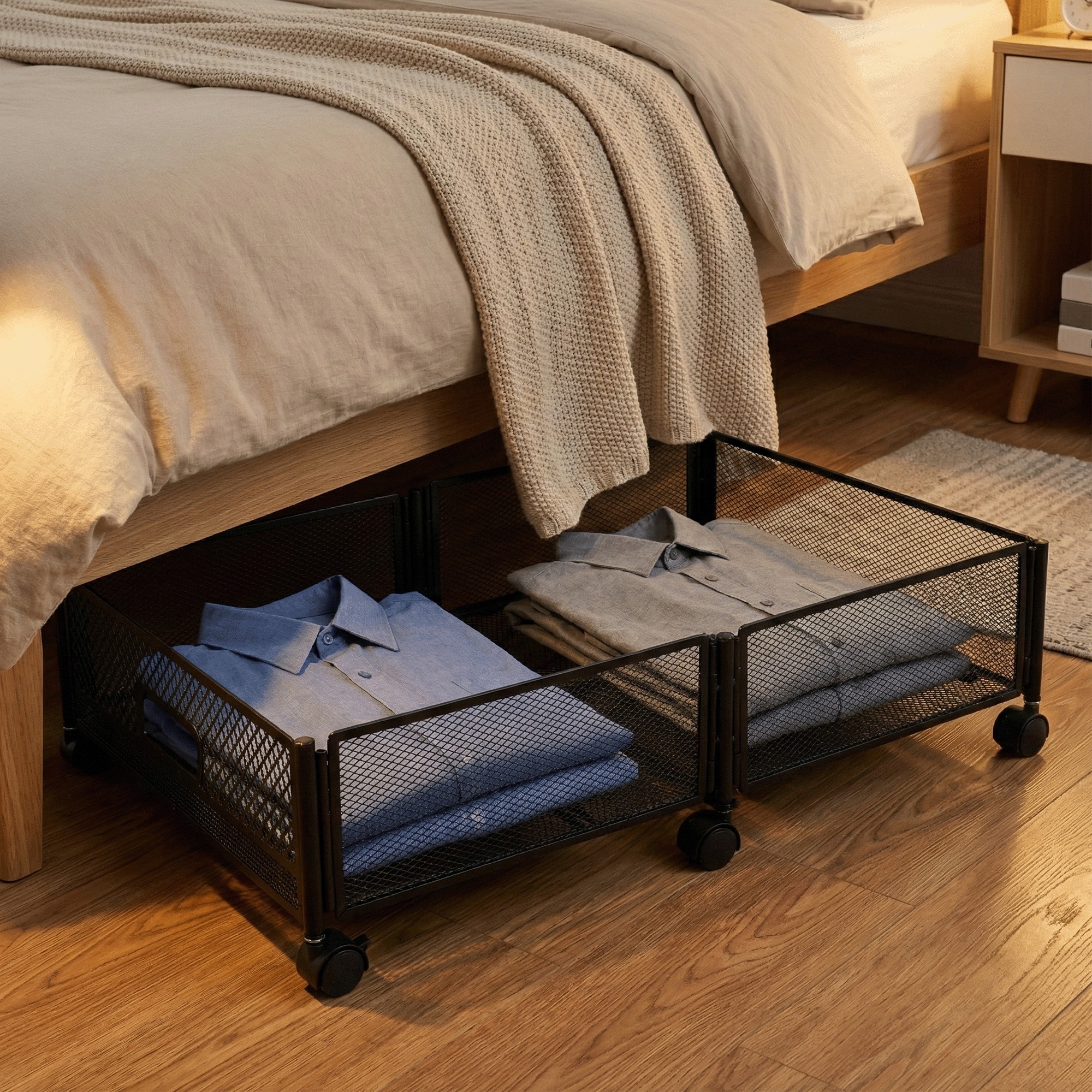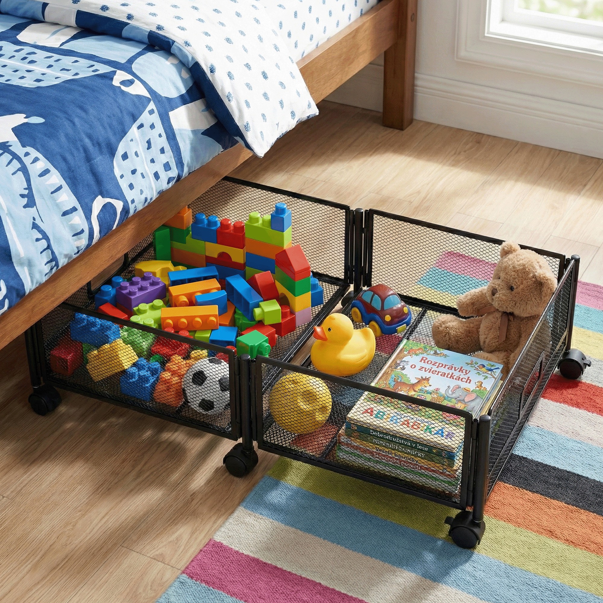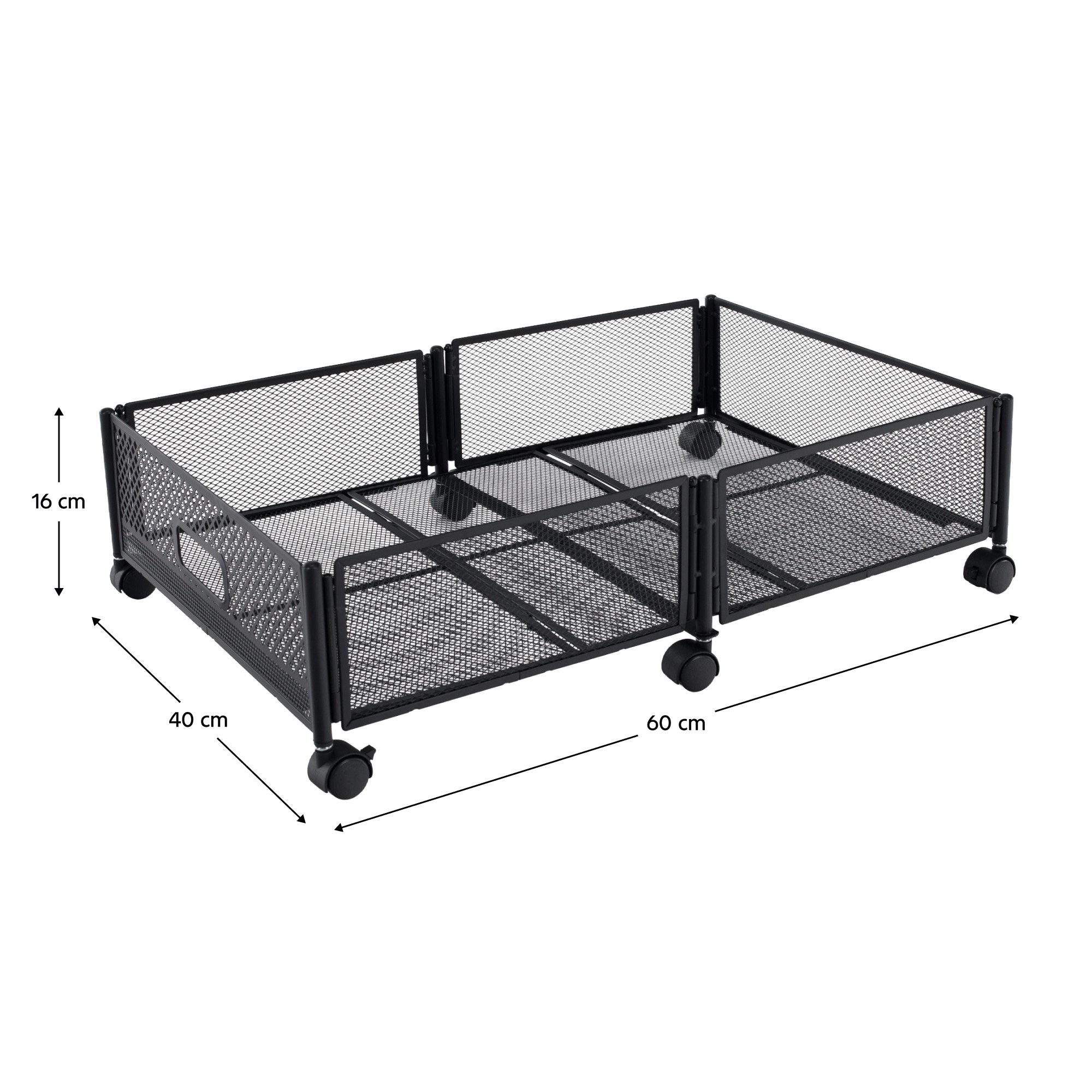 Využite priestor pod posteľou efektívne a bez zbytočného chaosu s praktickým úložným priestorom pod posteľ TOMKO TYP 1, ktorý pomáha udržať domácnosť prehľadnú a upratanú. Vďaka jednej priestrannej priehradke ponúka dostatok miesta na uskladnenie oblečenia, obuvi, hračiek či iných každodenných predmetov, ktoré chcete mať poruke, no zároveň skryté z dohľadu. Je vyrobený z odolného kovu v čiernom prevedení, čo zaručuje stabilitu a dlhú životnosť. Mriežkovaná konštrukcia zabezpečuje optimálnu cirkuláciu vzduchu, vďaka čomu zostanú uložené veci dobre vetrané. S rozmermi (ŠxHxV): 60x40x16 cm je ideálny na použitie pod posteľou bez zaberania ďalšieho priestoru v miestnosti. Praktický skladací dizajn umožňuje jednoduché uloženie organizéra v čase, keď ho práve nepotrebujete. Plastové kolieska s brzdou zabezpečujú pohodlnú manipuláciu a zároveň stabilné upevnenie na mieste. Dodáva sa v demonte, je multifunkčný, ľahko prenosný a vhodný pre každého, kto hľadá praktické riešenie na efektívne uskladnenie vecí v domácnosti.