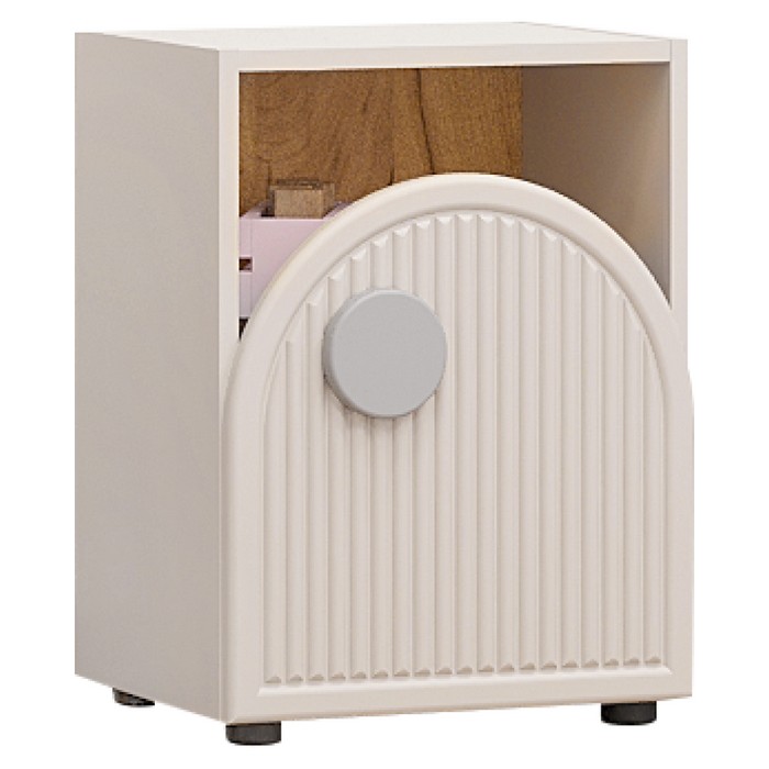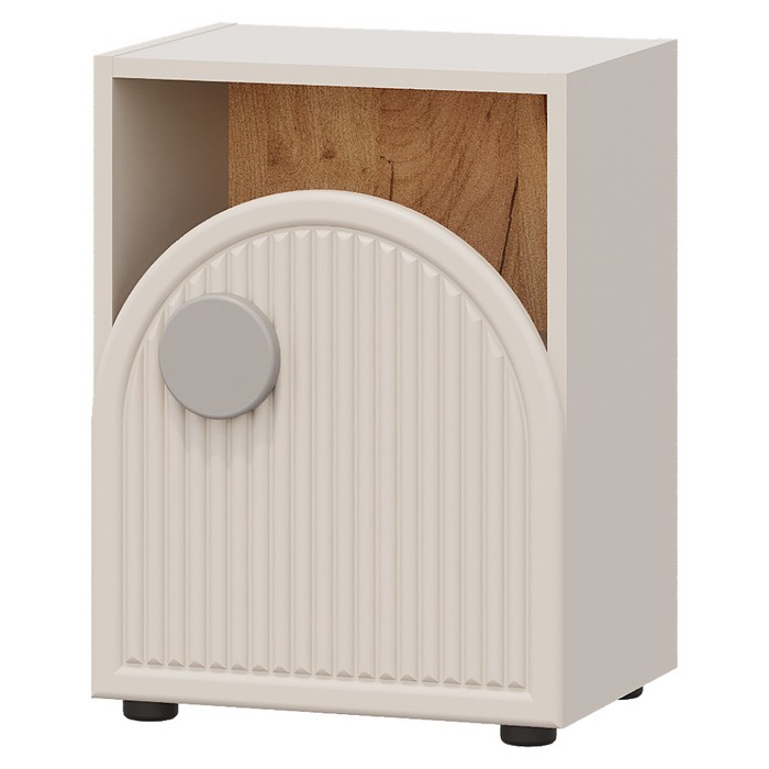 Vertikálny regál PIGA 1D je elegantný a praktický kúsok, ktorý skvelo doplní moderný interiér, najmä detskú izbu. Je vyrobený z kvalitnej laminovanej DTD v kombinácii s fóliovanou MDF a PCV hranami, čo zabezpečuje vysokú odolnosť, pevnosť a jednoduchú údržbu. Farebné prevedenie kašmír / dub craft zlatý pôsobí štýlovo a zároveň teplo, takže sa ľahko kombinuje s iným nábytkom. Regál má jednodverovú konštrukciu s praktickou policou, ktorá poskytuje dostatok priestoru na knihy, hračky či dekorácie. Univerzálne dvierka umožňujú montáž na ľavé alebo pravé otváranie, vďaka čomu si môžete orientáciu prispôsobiť podľa potreby. Rozmery regálu sú (ŠxHxV): 40,2x30,1x53,6 cm a hrúbka materiálu 1,6 cm. Nosnosť police je 20 kg, čo zaručuje stabilitu a funkčnosť pri každodennom používaní. Sivé úchytky, dekoratívne frézované dvierka a nízke nožičky s výškou 1 cm podčiarkujú moderný vzhľad a jemný dizajn celého kusu. Veľkou výhodou je možnosť modulácie - regál Piga 1D je možné kombinovať s vysokým regálom PIGA 1D, čím vytvoríte väčší, prehľadný a priestorovo úsporný úložný systém prispôsobený vašim potrebám. Pre maximálnu bezpečnosť odporúčame regál pripevniť k stene. Dodáva sa v demonte, čo uľahčuje jeho prepravu a montáž. Vertikálny regál Piga 1D vyniká moderným dizajnom, praktickým riešením úložného priestoru a možnosťou kombinovania, vďaka čomu sa stane univerzálnym doplnkom do každého interiéru.