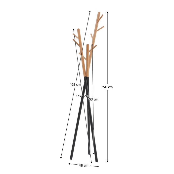 Stojanový vešiak ELVAR okamžite vniesie do vašej predsiene poriadok aj štýl. Je navrhnutý ako praktický a funkčný doplnok každodenného používania, ktorý zároveň elegantne dopĺňa interiér. Čierna kovová konštrukcia v kombinácii s háčikmi v prírodnom odtieni vytvára moderný, nadčasový vzhľad a ľahko sa zladí s rôznymi štýlmi zariadenia. Ponúka dostatok miesta na kabáty, bundy či doplnky bez toho, aby pôsobil masívne. Vešiak je ideálny do chodby alebo predsiene, kde spája praktickosť s dizajnom. Má rozmery (ŠxHxV): 48x48x190 cm a každý háčik unese maximálne 2,5 kg. Dodáva sa v demonte a jeho jednoduchá montáž vám umožní rýchlo ho začleniť do priestoru.