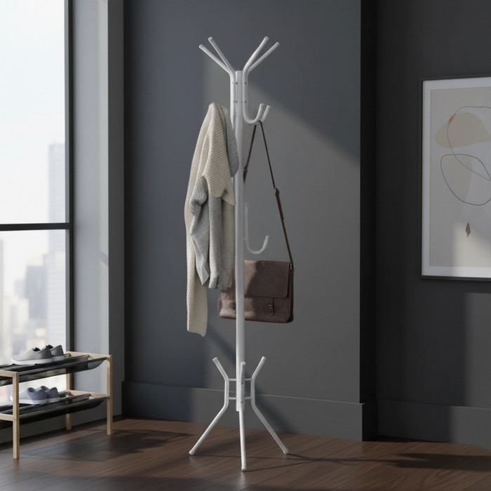 Stojanový vešiak LORIK TYP 1 je praktickým riešením na odkladanie oblečenia v predsieni alebo na chodbe. Vďaka kompaktným rozmerom (ŠxHxV): 36,5x36,5x176 cm nezaberá veľa miesta, no zároveň poskytuje dostatok priestoru na zavesenie kabátov, búnd či tašiek. Konštrukcia je vyrobená z kombinácie kovu a plastu, čo zabezpečuje pevnú stabilitu a dlhú životnosť. Vešiak je vyhotovený v elegantnej bielej farbe, ktorá pôsobí nadčasovo a ?ahko sa kombinuje s moderným aj klasickým interiérom. Disponuje prakticky rozmiestnenými háčikmi s nosnosťou až 2 kg na jeden háčik, takže je vhodný na každodenné používanie. Dodáva sa v demonte, pričom jeho montáž je rýchla a jednoduchá.