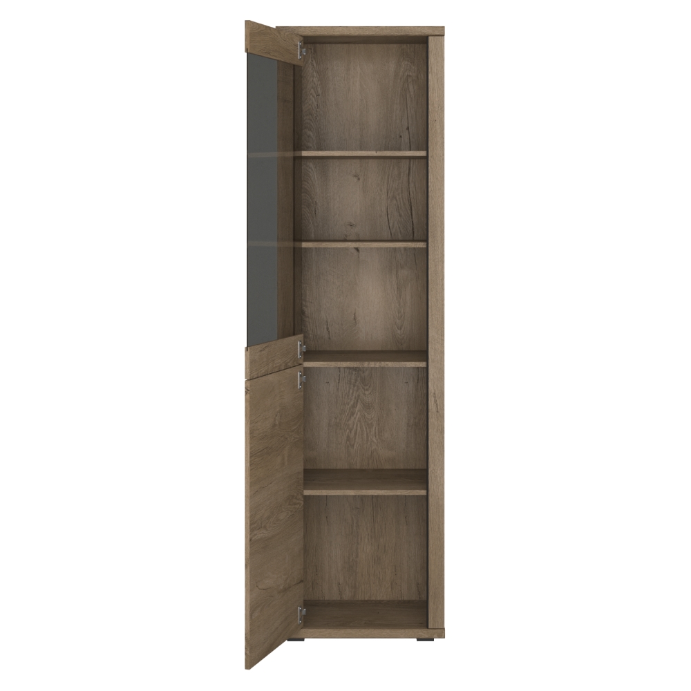 Svojou tmavou farbou dodáva priestoru sofistikovaný nádych. Vitrína má rovný priestorový tvar a je dostupná v jednom farebnom prevedení, čo uľahčuje jej kombinovanie s ostatným nábytkom.