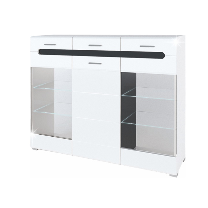 Vitrína s osvetlením Owal HB - biely vysoký lesk / čierny vysoký lesk