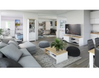 Kombinácia bieleho lesku a prírodného dubu wotan dodáva vitríne nadčasový vzhľad, ktorý sa hodí do rôznych typov interiérov. Vďaka dvom sekciám a štyrom dverám môžete efektívne usporiadať svoje veci. Vitrína je navrhnutá tak, aby bola vhodná do rôznych priestorov v domácnosti s orientáciou na ľavú aj pravú stranu.