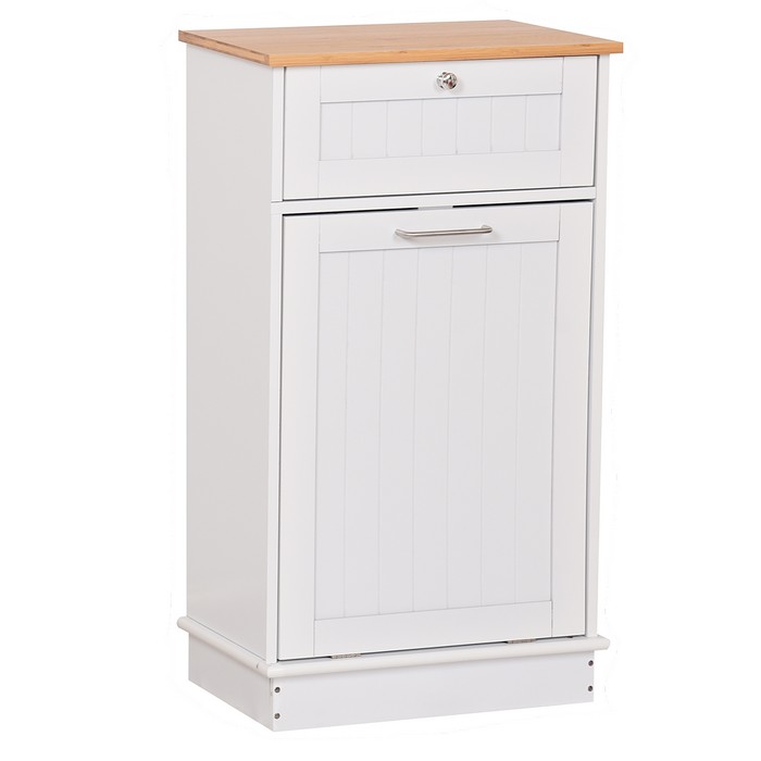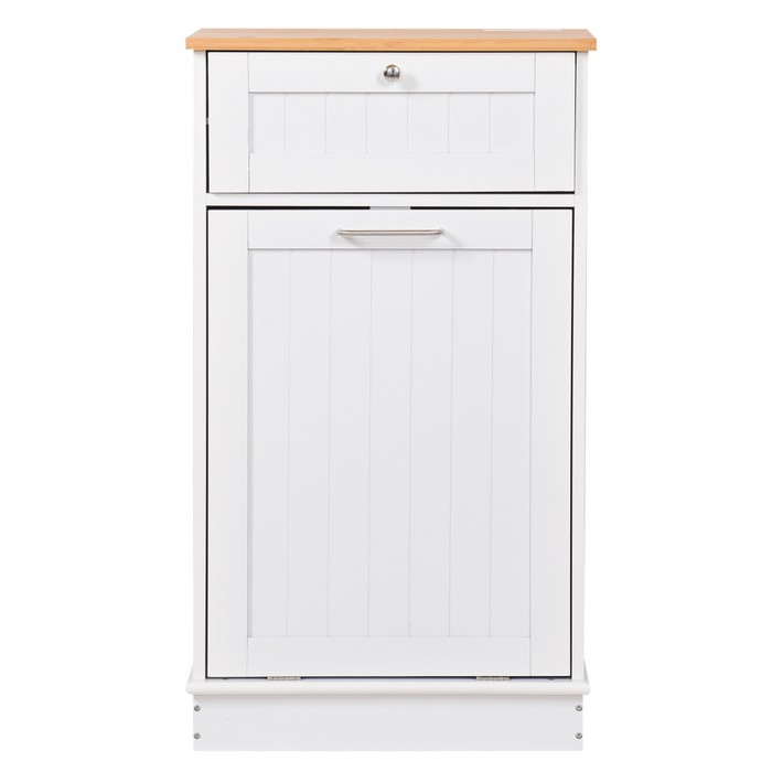Výklopná skrinka s odpadkovým košom Delins Typ 1 - biela / bambus