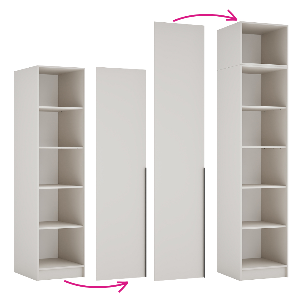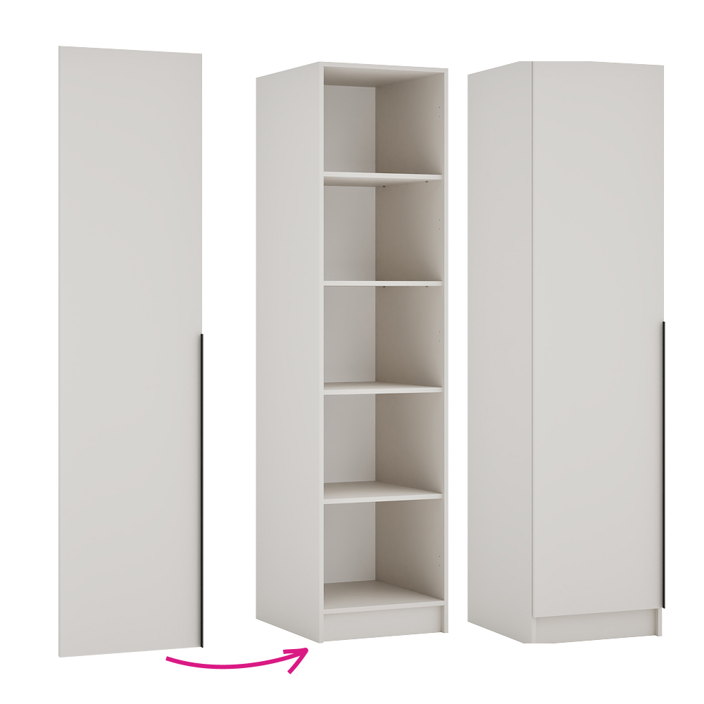 Nízke dvierka KREO 50 predstavujú praktické a elegantné riešenie na uzavretie korpusov s nadstavcami a pomáhajú udržať poriadok vo vašom šatníku. Sú vyrobené z laminovanej DTD s ABS hranami, pričom majú moderné farebné prevedenie kašmír. Rozmery dvierok sú (ŠxHxV): 49,6x1,6x189,3 cm a hrúbka DTD materiálu je 1,6 cm, zatiaľ čo ABS hrany majú hrúbku 0,2 cm. Vďaka univerzálnemu prevedeniu ich môžete namontovať na pravú aj ľavú stranu podľa dispozície miestnosti. Komfort pri používaní zabezpečuje tichý domyk spolu s kvalitnými pántmi. Súčasťou je aj úchytka z plastu v čiernej farbe, ktorá dotvára moderný vzhľad. Dvierka je možné kombinovať s nábytkom v odtieni dub artisan a sú vhodné pre korpusy Kreo 50, 100 a 150. Produkt je dodávaný v demonte, čo uľahčuje transport aj manipuláciu.
