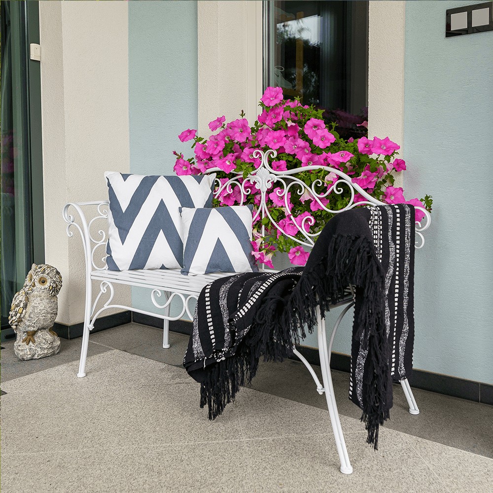 Pre romantické duše tu máme pôvabnú záhradnú lavičku ETELIA NEW. Originálna, krásna a dizajnová! Svojím bielym farebným prevedením ulahodí Vašim očiam i záhrade. Rozmery tejto krásnej dámy sú (ŠxHxV): 131x48x86 cm, s výškou sedu 43 cm, hĺbkou sedu 42 cm a šírkou sedu 100 cm. Na šarme jej pridávajú aj dokonale prepracované ornamenty. Zhotovená je z pevného a kvalitného kovu, ktorý zabezpečuje nosnosť až 150 kg. Okrášlite si ju podľa vlastnej chuti napríklad dekoratívnymi vankúšikmi. Pod rozkvitnutou jabloňou, v altánku vyzdobenom svetielkami či pri záhone ruží, Etelia sa už teší na Vašu záhradu. Dodávaná je v demonte.