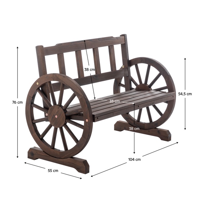 Vytvorte si príjemné miesto na oddych v duchu vidieka so záhradnou lavičkou SABA TYP 1, ktorá vyniká originálnym dizajnom inšpirovaným tradičnými drevenými vozmi. Charakteristickým prvkom sú bočné opory a opierky na ruky v tvare veľkých kolies s priemerom 54,5 cm, ktoré dodávajú lavičke výrazný a štýlový vzhľad. Lavička je vyrobená z kvalitného borovicového dreva v hnedom prevedení, pričom hrúbka materiálu sa pohybuje od 1,8 do 4,5 cm, čo zaručuje pevnosť a stabilitu. Celkové rozmery lavičky sú (ŠxHxV): 104x55x76 cm. Pohodlné sedenie zabezpečuje šírka sedacej časti 95,5 cm, hĺbka 35 cm a výška sedenia 38 cm, pričom opierka chrbta má výšku 38 cm. Nosnosť lavičky je až 170 kg, takže poskytuje spoľahlivé miesto na oddych pre dve osoby. Vďaka svojej odolnosti voči poveternostným podmienkam je ideálna na záhradu, dvor alebo terasu. Skvele vynikne pod stromom, pred domom alebo pri kvetinovom záhone, kde poslúži nielen ako praktické sedenie, ale aj ako dekoratívny prvok. Pre zachovanie jej krásy a predĺženie životnosti odporúčame výrobok chrániť pred nepriaznivým počasím. Lavička je dodávaná v demonte.