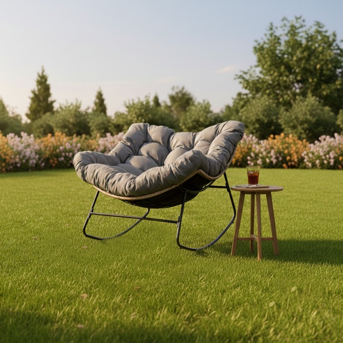 Záhradné hojdacie kreslo Devner - čierna / hnedá / sivá