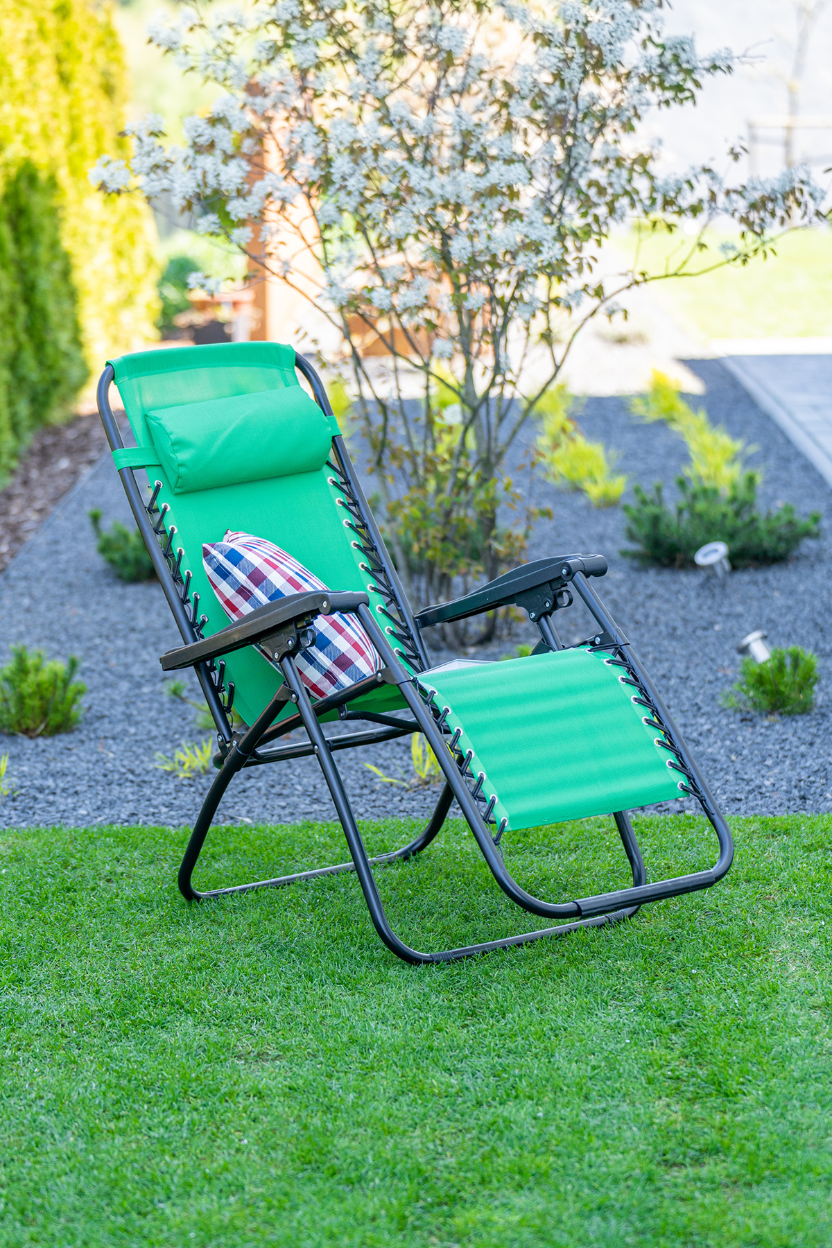 Krásne dvojpolohové záhradné kreslo z hliníkovej konštrukcie DELUXE je dodávané v zelenej farbe výplne. Podrúčky sú z PVC, výplň je z textílie odolnej poveternostným vplyvom. Kreslo má polohovateľnú opierku chrbta a dodáva sa s podhlavníkom. Pod opierkami rúk sa nachádzajú zaisťovacie lopatky, ktoré umožňujú zafixovať lehátko v polohe aká Vám najviac vyhovuje. Výška sedu je 40 cm. Nosnosť lehátka je 120 kg.