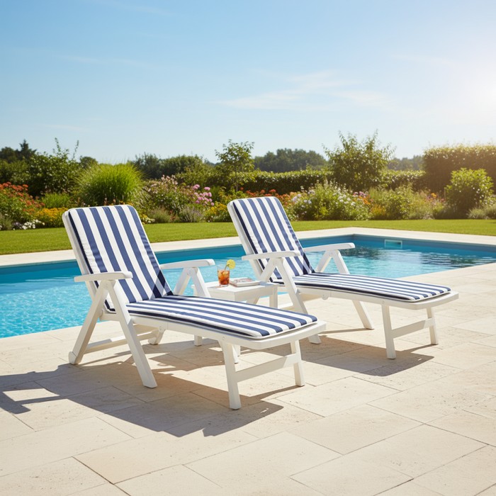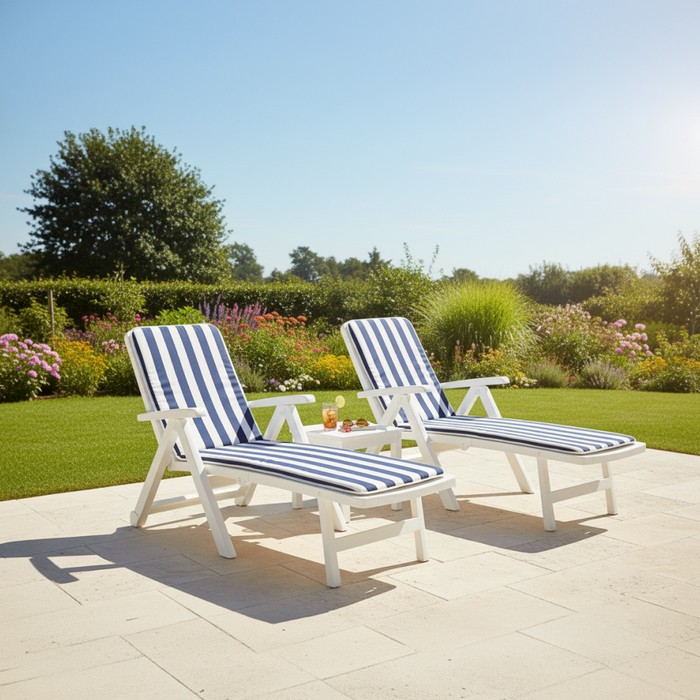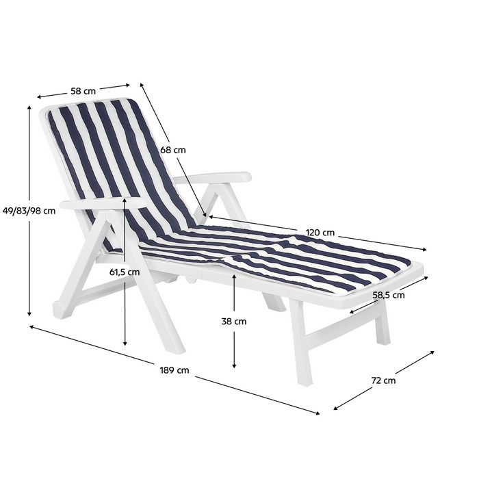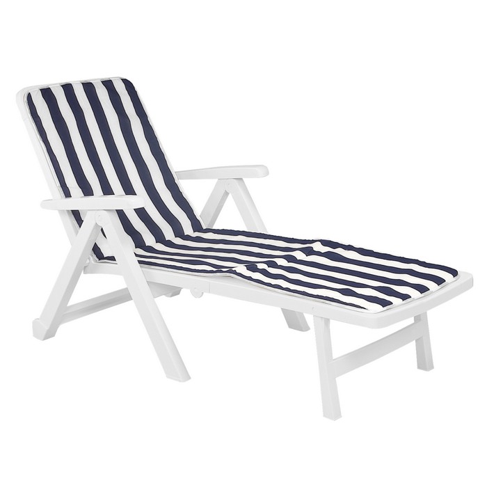 Záhradné lehátko s vankúšom Smerdo 2 - biela / vzor pásik