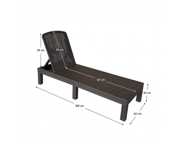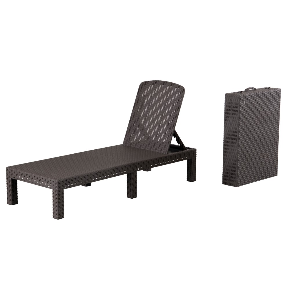 Doprajte si pohodlie ako v luxusnom rezorte priamo u vás doma! Elegantné lehátko ZAMA vám poskytne dokonalé miesto na oddych na záhrade, terase či pri bazéne. Navyše je skladacie, takže ho jednoducho prenesiete kamkoľvek. Po jeho zložení vznikne praktický box s rúčkou, ktorá výrazne uľahčí jeho presun. Vyrobené je z plastu v hnedom dekóre. Opierka chrbta je polohovateľná v 4 polohách. Je len na vás, ktorej polohe na oddych dáte prednosť. Celkové rozmery lehátka sú (ŠxHxV): 60x158x30 cm, hĺbka po sklopení 186 cm, hĺbka sedu je 121 cm, výška chrbtovej opierky je 62 cm a výška nožičiek je 21 cm. Maximálne zaťaženie je 90 kg.