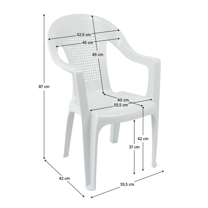 Záhradné kreslo MEDRO je jednoduchým a praktickým riešením na každodenné sedenie v interiéri aj exteriéri. Je vyrobené z odolného plastu, ktorý sa vyznačuje nenáročnou údržbou a dlhou životnosťou. Biele farebné prevedenie pôsobí univerzálne a ľahko sa prispôsobí rôznym štýlom zariadenia, či už na záhrade, terase, balkóne alebo v rekreačných priestoroch. Kreslo má rozmery (ŠxHxV): 55,5x42x87 cm, pričom výška sedu je 42 cm. Sedák ponúka hĺbku 40 cm a šírku 55,5 cm, operadlo má šírku 45 cm a výšku 45 cm, čo zabezpečuje pohodlné sedenie. Maximálna nosnosť kresla je 100 kg. Praktickým detailom sú otvory na odtok vody, ktoré oceníte najmä pri vonkajšom používaní. Kreslo je stohovateľné, takže viac kusov môžete jednoducho ukladať na seba a šetriť tak miesto pri skladovaní. Je ideálny doplnok pre pohodlný oddych a dodáva sa už zmontované, pripravené na okamžité použitie.