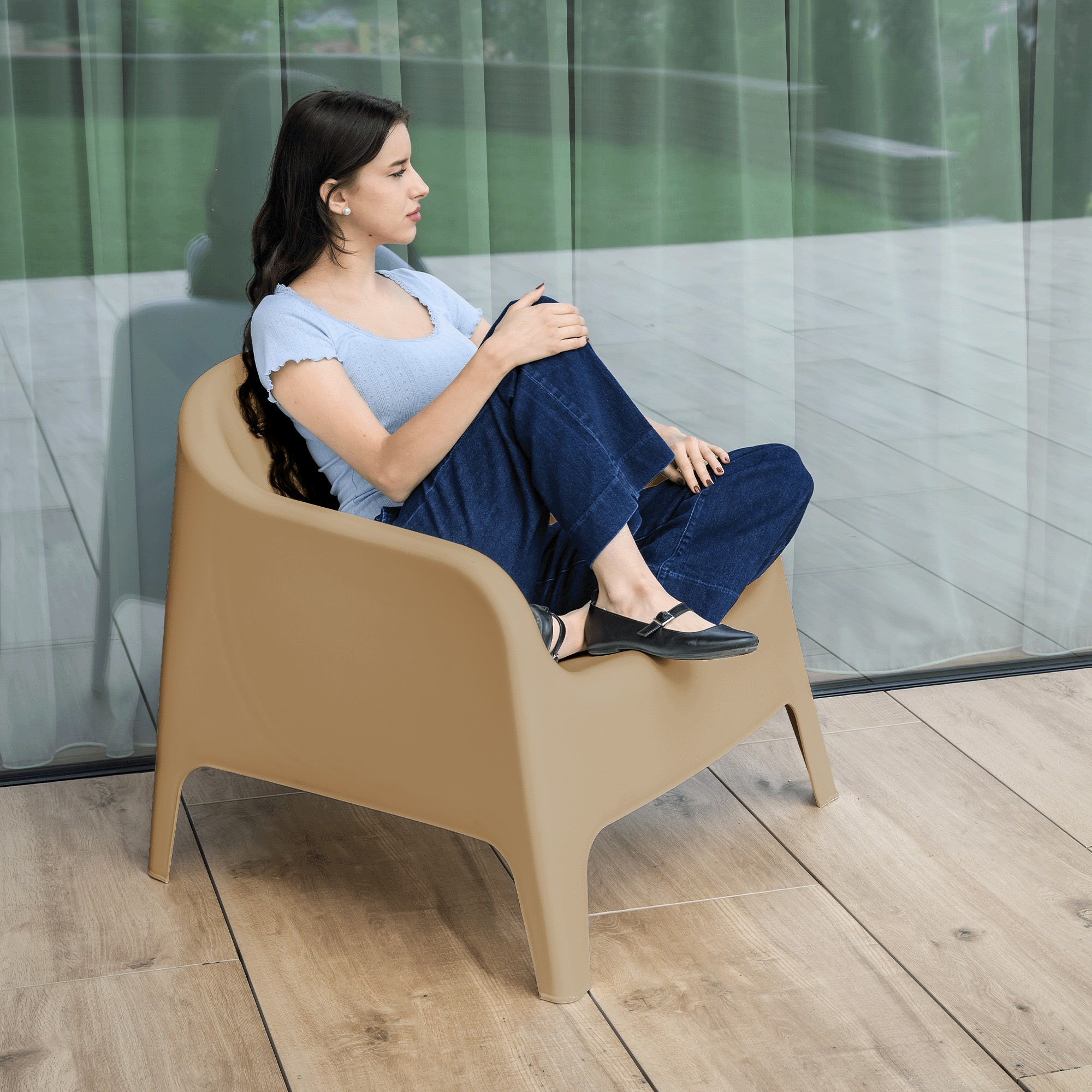 Zmodernizujte svoj interiér alebo exteriér štýlovým kreslom SOKRA NEW, ktoré vnesie do priestoru nádych sviežosti a minimalizmu. Vďaka jednoduchému dizajnu, jemne zaobleným líniám a praktickým opierkam na ruky ponúka pohodlie v elegantnom prevedení. Kreslo je vyrobené z hnedého plastu a vyniká možnosťou stohovania, čo uľahčuje jeho uskladnenie a premiestňovanie podľa potreby. S rozmermi (ŠxHxV): 83x79x70 cm výškou sedu 37 cm, hĺbkou sedu 47 cm, šírkou sedu 50 cm a výškou operadla 50 cm ponúka kreslo ideálnu kombináciu komfortu a praktickosti v modernom dizajne. Maximálne zaťaženie je 100 kg.