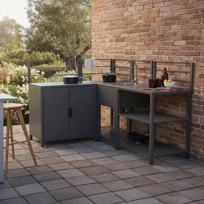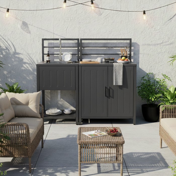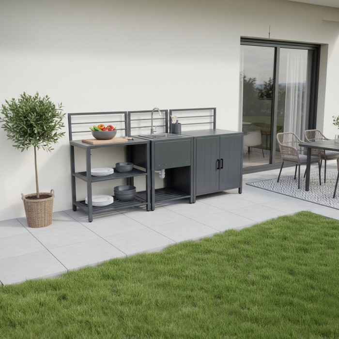 Záhradný kuchynský ostrovček s drezom Tanita Typ 2 - sivá