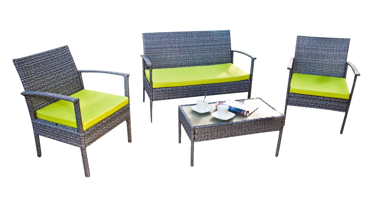 Záhradný nábytok PERFETTO sa stane naozaj perfektným spoločníkom pri stretnutiach s priateľmi či dlhých rozhovoroch s rodinou. Perfetto je vyrobený z kvalitného umelého ratanu, ktorý vykazuje vysokú odolnosť voči meniacim sa poveternostným podmienkam. Moderný dizajn a originálne farby si získajú aj tých najnáročnejších. Ratan v sivej melanž farbe krásne spolupracuje so zelenou farbou, ktorá zdobí telo vankúšov a vytvára tak jedinečnú a fenomenálnu záhradnú sadu. Umelý ratan má rozmery 7-8 mm x 1,2 mm, zdobí ho hladká štruktúra. Konštrukcia je zhotovená z pevnej ocele.