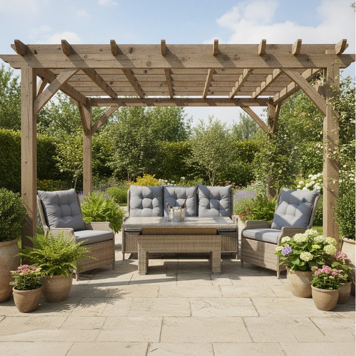 Záhradný 5-dielny set BRONTE predstavuje ideálne spojenie moderného dizajnu, vysokej kvality a maximálneho komfortu. Súprava obsahuje stôl, dve kreslá, dvojmiestnu a trojmiestnu pohovku, vďaka čomu poskytuje dostatok priestoru pre rodinu aj návštevy. Farebná kombinácia hnedosivého melíru a sivej pôsobí elegantne a nadčasovo, takže ľahko zapadne do rôznych typov exteriéru. Konštrukcia setu je vyrobená z hliníka a technoratanu, čo zaručuje pevnosť, stabilitu a dlhú životnosť. Stolová doska z tvrdeného skla s keramickým povrchom je nielen štýlová, ale aj nenáročná na údržbu. Stôl má nastaviteľnú výšku v rozmedzí 56 až 72 cm a je vybavený praktickým zásobníkom na ľad z nehrdzavejúcej ocele s objemom 10 litrov, vďaka ktorému budete mať chladené nápoje vždy poruke. Kreslá aj pohovky disponujú polohovateľnými opierkami chrbta s uhlom sklonu od 56° do 73,7°, čo umožňuje prispôsobiť si sedenie podľa vlastných potrieb. Súčasťou setu sú pohodlné vankúše s penovou výplňou a hrúbkou 7 cm, ktoré zvyšujú komfort pri sedení. Poťahy sú snímateľné, vodoodolné, vybavené zipsom a možno ich prať pri teplote 30 °C, pričom sa nesmú sušiť v sušičke, bieliť, chemicky čistiť ani žehliť. Rozmery jednotlivých častí sú nasledovné: stôl má rozmery (ŠxHxV): 148x80x56-72 cm, kreslo (ŠxHxV): 63x83,5x97 cm, dvojmiestna pohovka (ŠxHxV): 120x83,5x97 cm a trojmiestna pohovka (ŠxHxV): 179x83,5x97 cm. Výška sedu je 48 cm s vankúšom a 41 cm bez neho, hĺbka sedu je 51 cm a šírka 56 cm. Výška operadla je 62 cm a šírka 55 cm, pričom výška opierok na ruky od zeme sa pohybuje od 55 do 60 cm. Maximálna nosnosť stola je 36 kg, kresla 68 kg, dvojmiestnej pohovky 136 kg a trojmiestnej pohovky 204 kg. Set je vhodný na použitie v exteriéri a je odolný voči poveternostným podmienkam, no pre zachovanie jeho kvality sa odporúča chrániť ho pred nepriaznivým počasím. Dodáva sa v demonte.